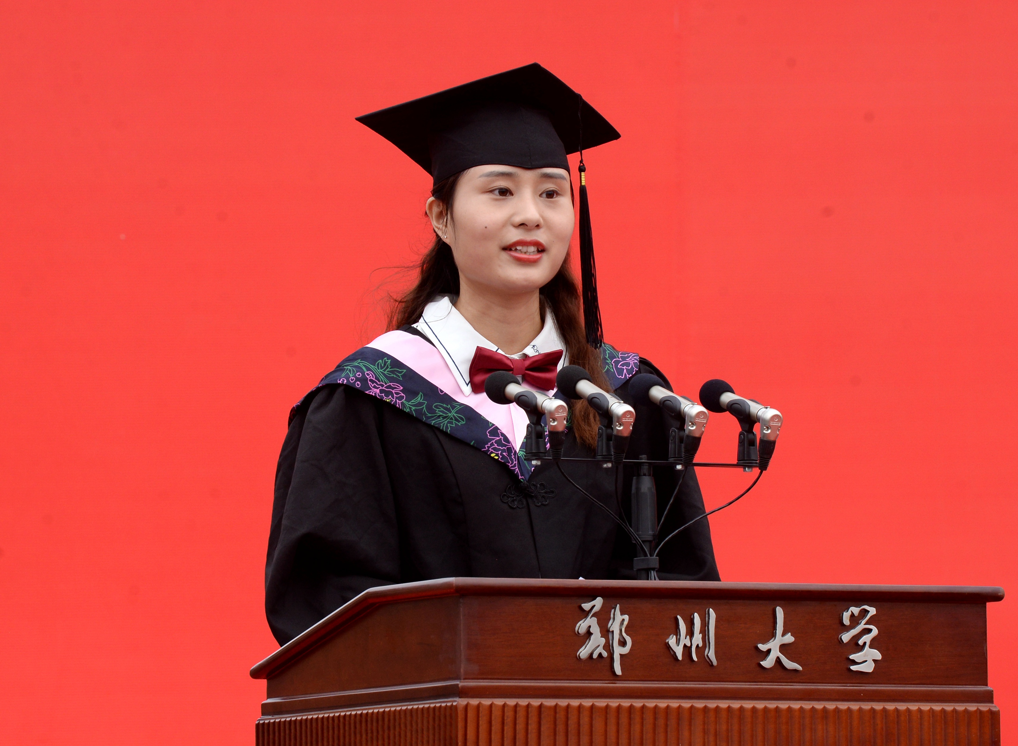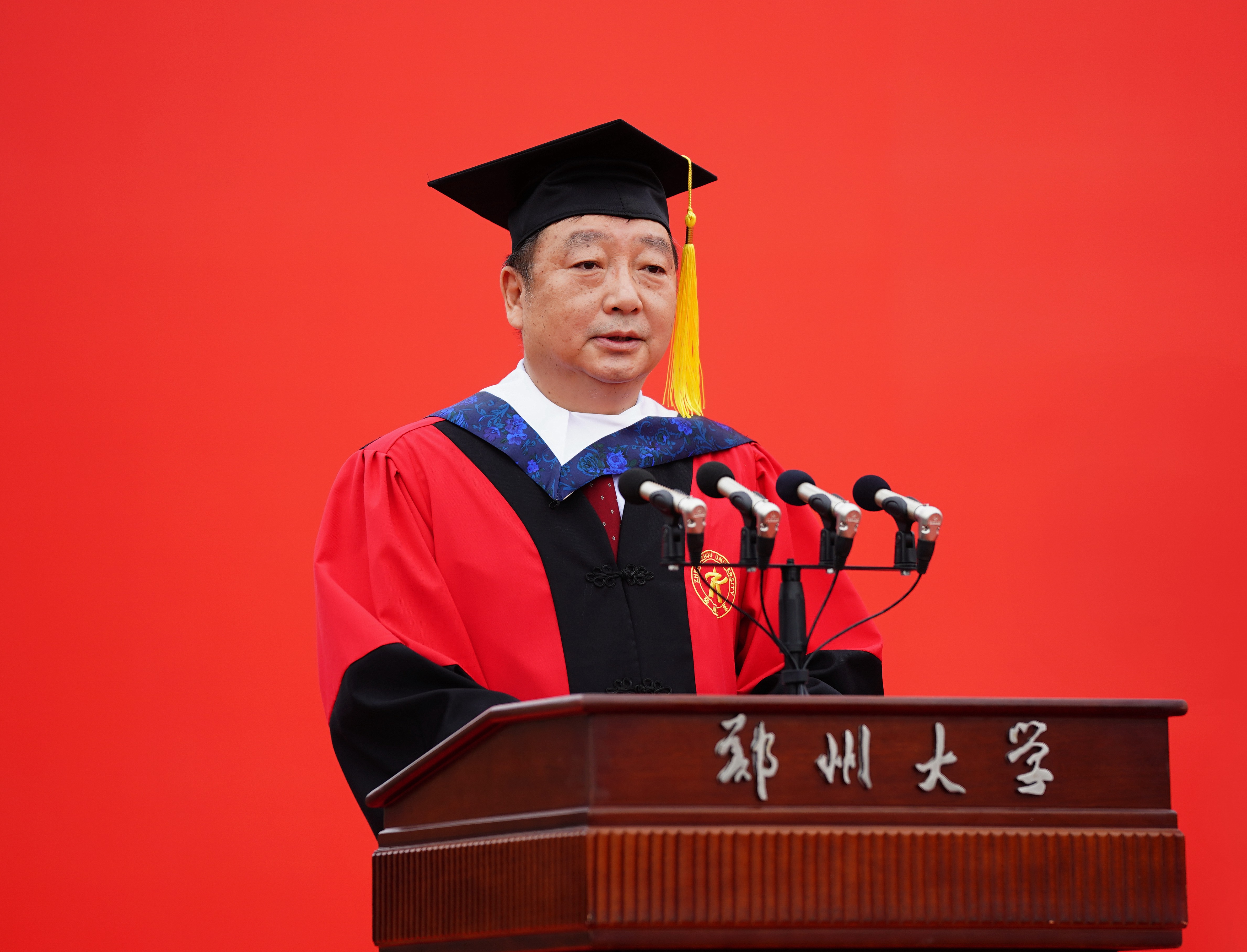 他寄語全體畢業(yè)生,面對新生活,要腳踏實地,只要堅持腳踏實地的人生態(tài)度,就會找到光明的事業(yè)起點;面對新生活,要擁抱社會,走向社會,要做學(xué)習(xí)者,更要當(dāng)好主人,積極擁抱社會;面對新生活,要堅定信心,“我是鄭大的”意味著你在鄭大獲取的專業(yè)知識、專業(yè)技能與思維方式,更意味著信心。