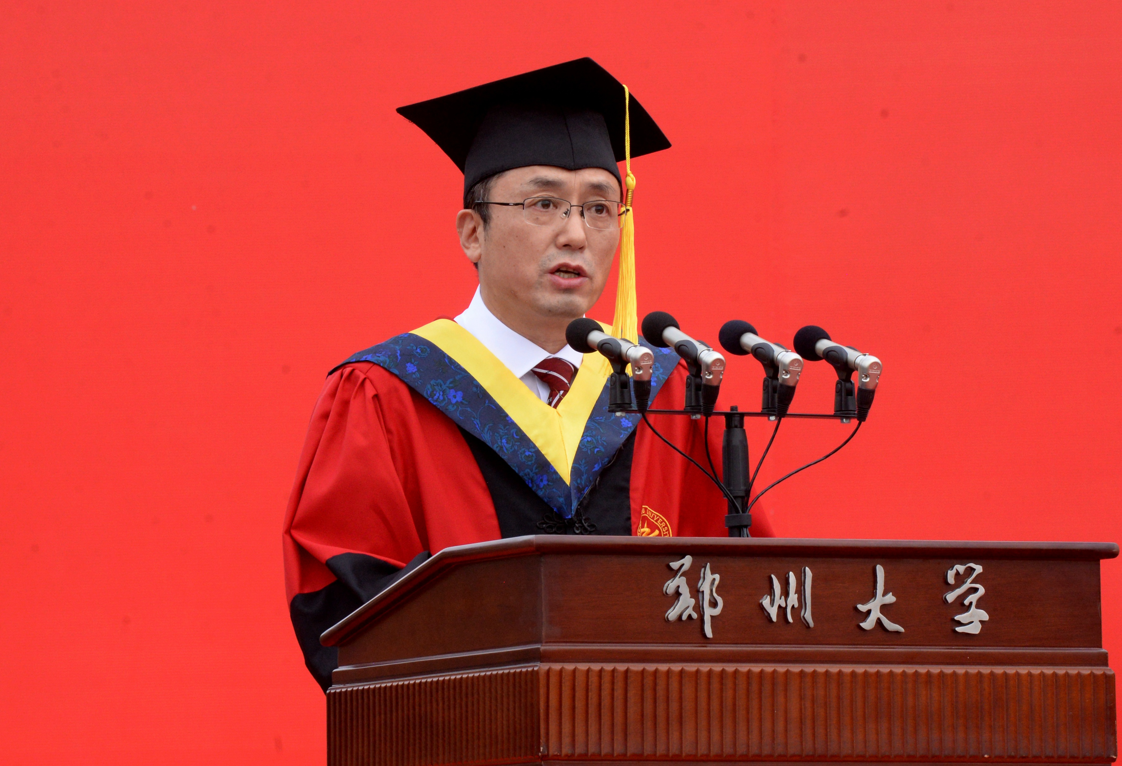 河南省政協(xié)副主席、鄭州大學(xué)校長劉炯天為畢業(yè)生代表授位