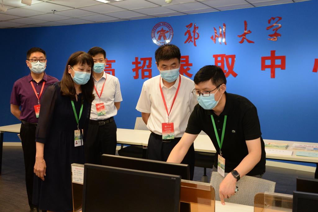 8月8日,在2020年高招河南省內藝術類、體育類、臨床醫學等提前批次正式投檔之際,校黨委書記宋爭輝到招生辦公室錄取大廳現場檢查指導錄取工作,并對工作在招生一線的老師們進行慰問,校本科招生領導小組成員和相關部門負責同志一同參加。