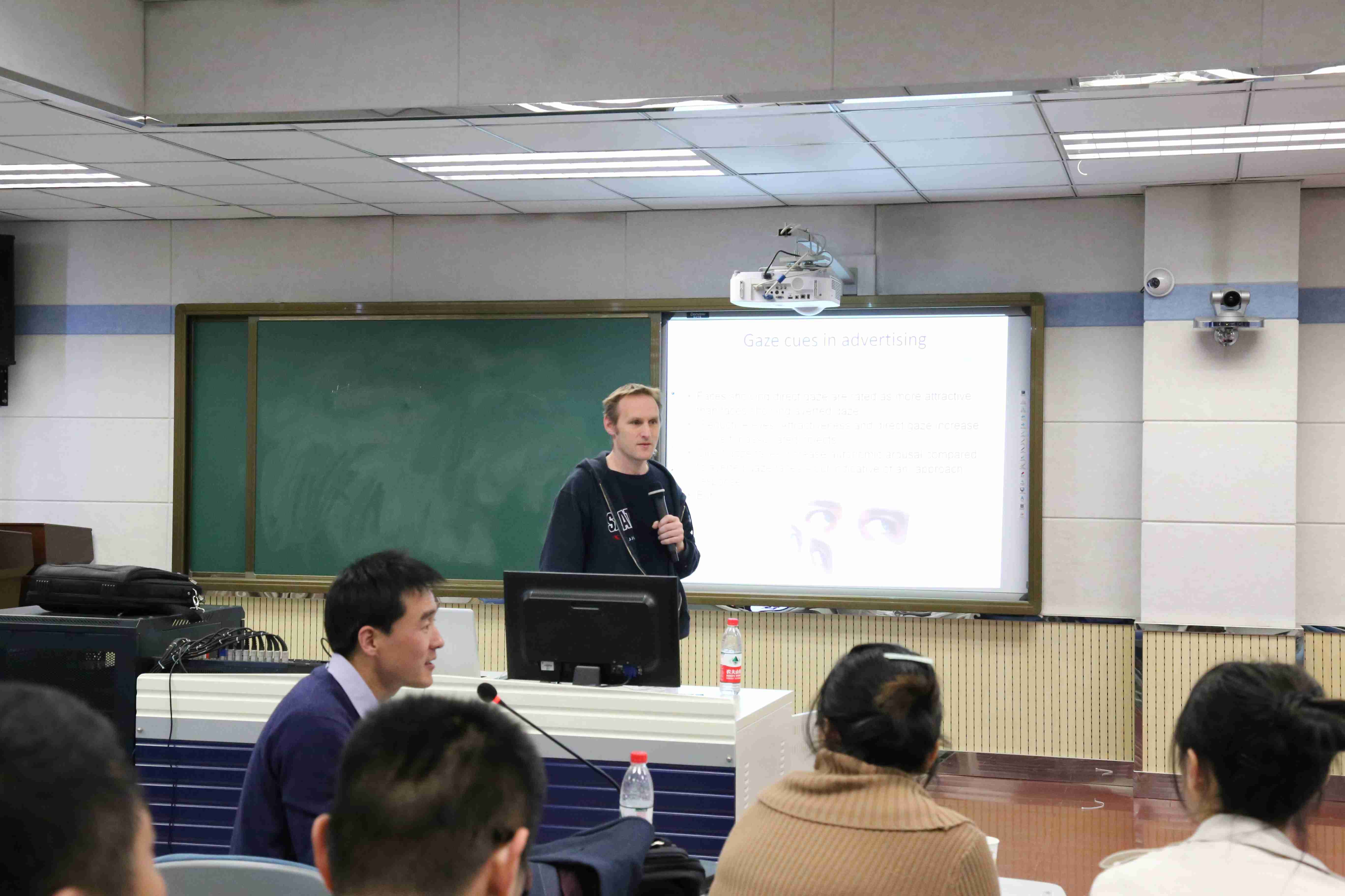 本次研討會(huì)的內(nèi)容涵蓋了眼動(dòng)研究在各領(lǐng)域的新進(jìn)展、眼動(dòng)范式與數(shù)據(jù)分析、經(jīng)典研究案例、經(jīng)驗(yàn)交流等。Samuel Hutton博士首先對(duì)眼動(dòng)研究進(jìn)行了簡(jiǎn)要介紹,主要包括眼動(dòng)的認(rèn)知基礎(chǔ)、眼動(dòng)追蹤的測(cè)量及眼動(dòng)的主要應(yīng)用領(lǐng)域,讓與會(huì)人員對(duì)眼動(dòng)研究有了一個(gè)整體認(rèn)識(shí),并分別對(duì)眼動(dòng)追蹤技術(shù)在面孔或表情加工中的應(yīng)用、在瞳孔測(cè)量中的應(yīng)用、對(duì)動(dòng)態(tài)刺激的研究及路徑分析進(jìn)行了詳細(xì)地報(bào)告,使在場(chǎng)的老師、同學(xué)們受益匪淺。王福興教授結(jié)合自己的研究成果重點(diǎn)報(bào)告了眼動(dòng)技術(shù)在發(fā)展心理學(xué)及教育心理學(xué)的應(yīng)用。會(huì)后,許多老師就自己的研究與Samuel Hutton博士及王福興教授進(jìn)行了深入的交流。
