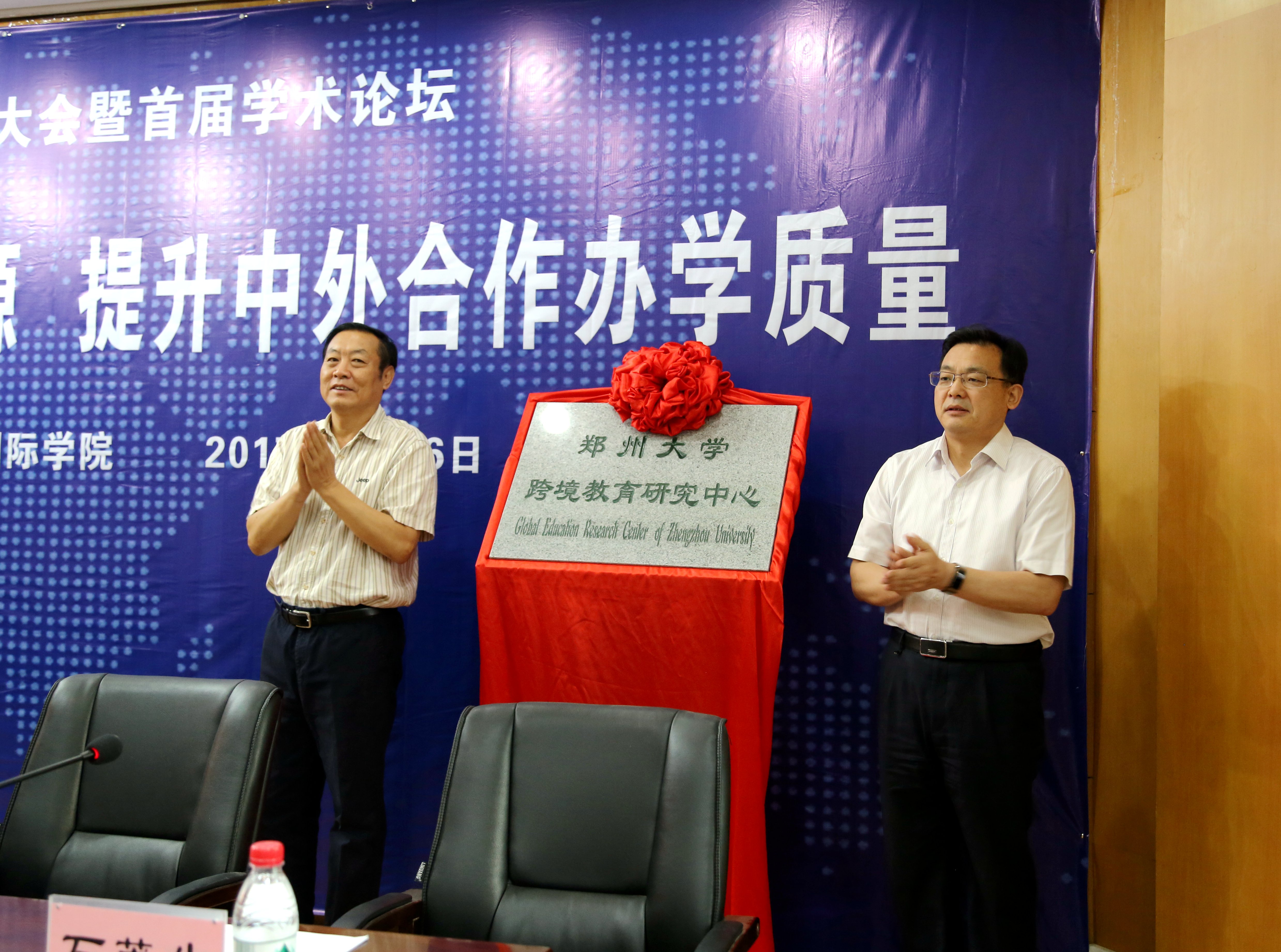 6月16日,鄭州大學跨境教育研究中心成立大會暨首屆學術論壇在南校區舉行。河南省教育廳廳長助理榮西海,中國高教學會中外合作辦學研究分會理事長、廈門大學合作辦學研究中心主任林金輝,中國國際教育交流協會涉外辦學質量保障部主任唐振福,河南城建學院副校長楊風嶺,鄭州大學副校長韓國河出席會議。哲學社會科學研究院、國際交流與合作處、對外聯絡辦公室等單位負責同志、國際學院黨政班子及師生代表以及來自全國各高校的近50名專家學者參加會議。研究中心成立大會由國際學院黨委書記安立民主持。