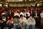 整場報告會持續了兩個小時,師生們不時被老先生的幽默詼諧逗樂,歡聲笑語掌聲不絕于耳。不少同學感嘆:“大師果然學識淵博,不僅經濟講的好,歷史文化也很精通。”商學院2006級金融學專業的王曉川同學說:“大師的見解很獨到,尤其是他對高額外匯儲備的分析很新穎,使我對經濟熱點問題有了更深的理解,今后我會注重把書本學習和社會實際聯系起來,以后爭取自主創業,在社會的平臺上為他人做貢獻。”報告會一開場,當厲以寧教授看到臺下擠滿了站著聽講的學生時,他大手一揮親切地說:“你們可以坐到主席臺上來啊,這邊空間這么大。”有一些同學馬上放松了心情圍坐在主席臺前,這么近與大師“親密接觸”,也成了報告會上的一段佳話。
