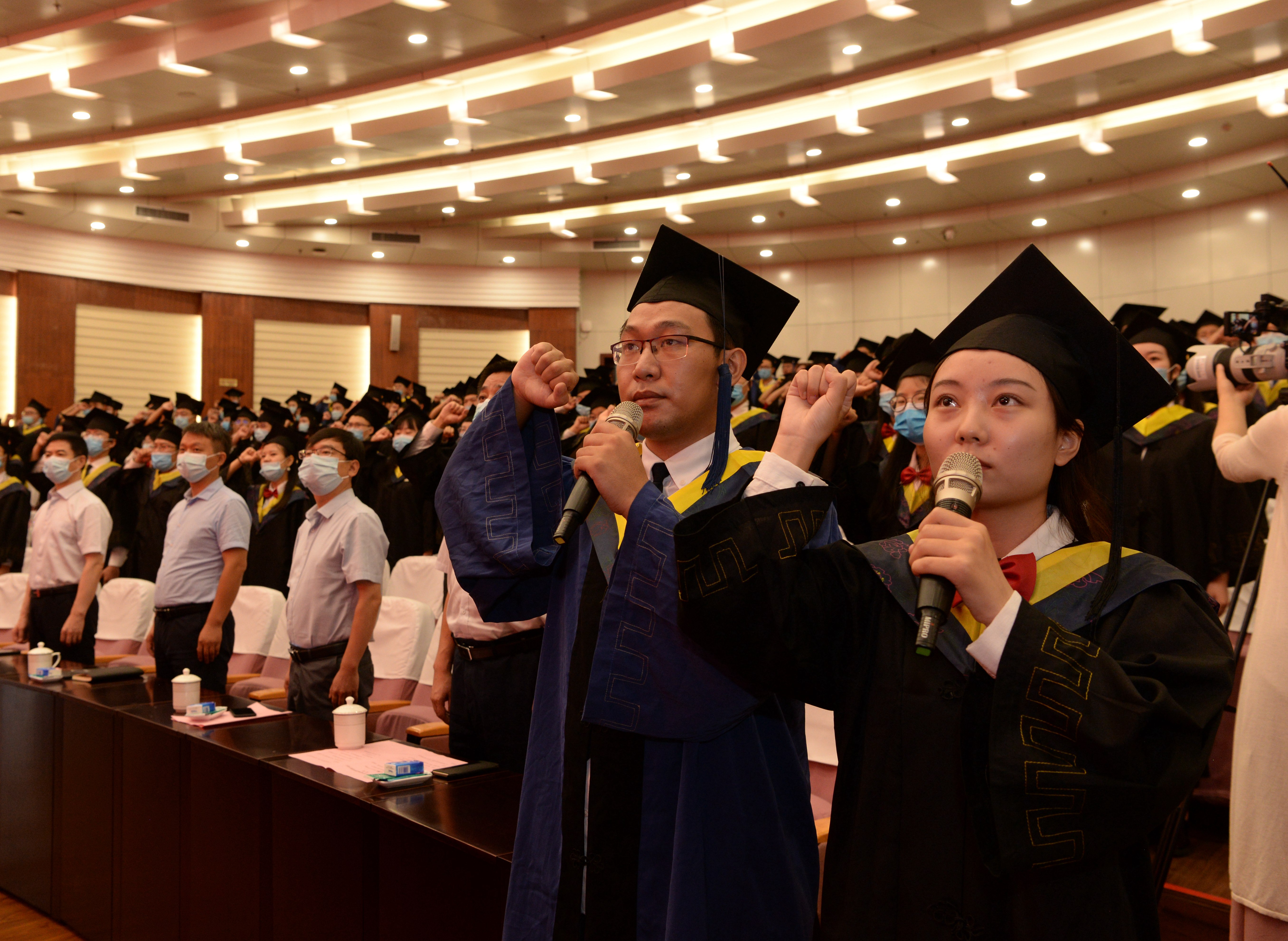 師生合唱《歌唱祖國》,在高亢激昂的歌聲中,鄭州大學2020年第二次畢業典禮暨學位授予儀式落下帷幕。