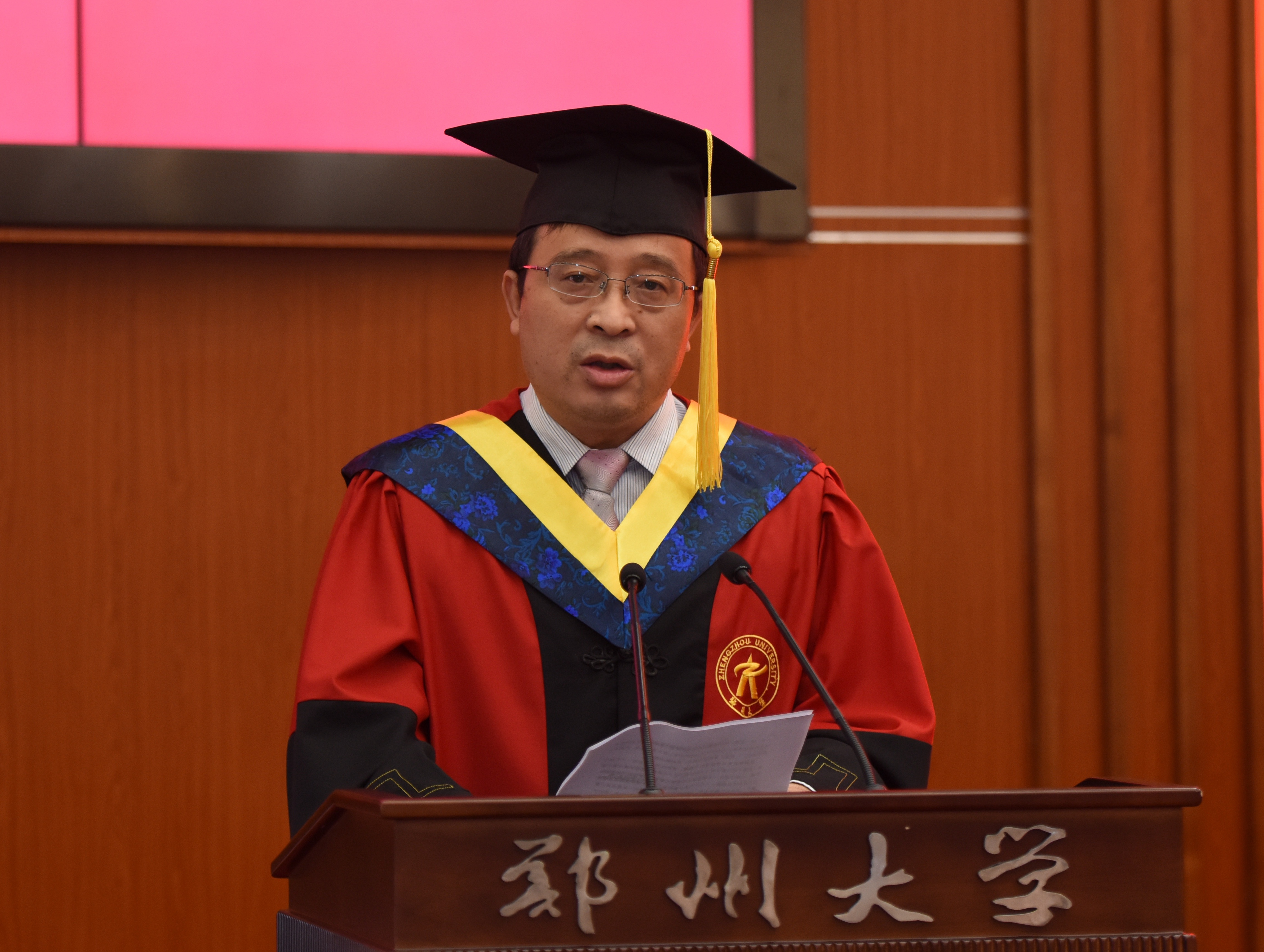 河南省政協副主席、鄭州大學校長劉炯天分別為博士畢業生代表、碩士畢業生代表、本科畢業生代表授位。