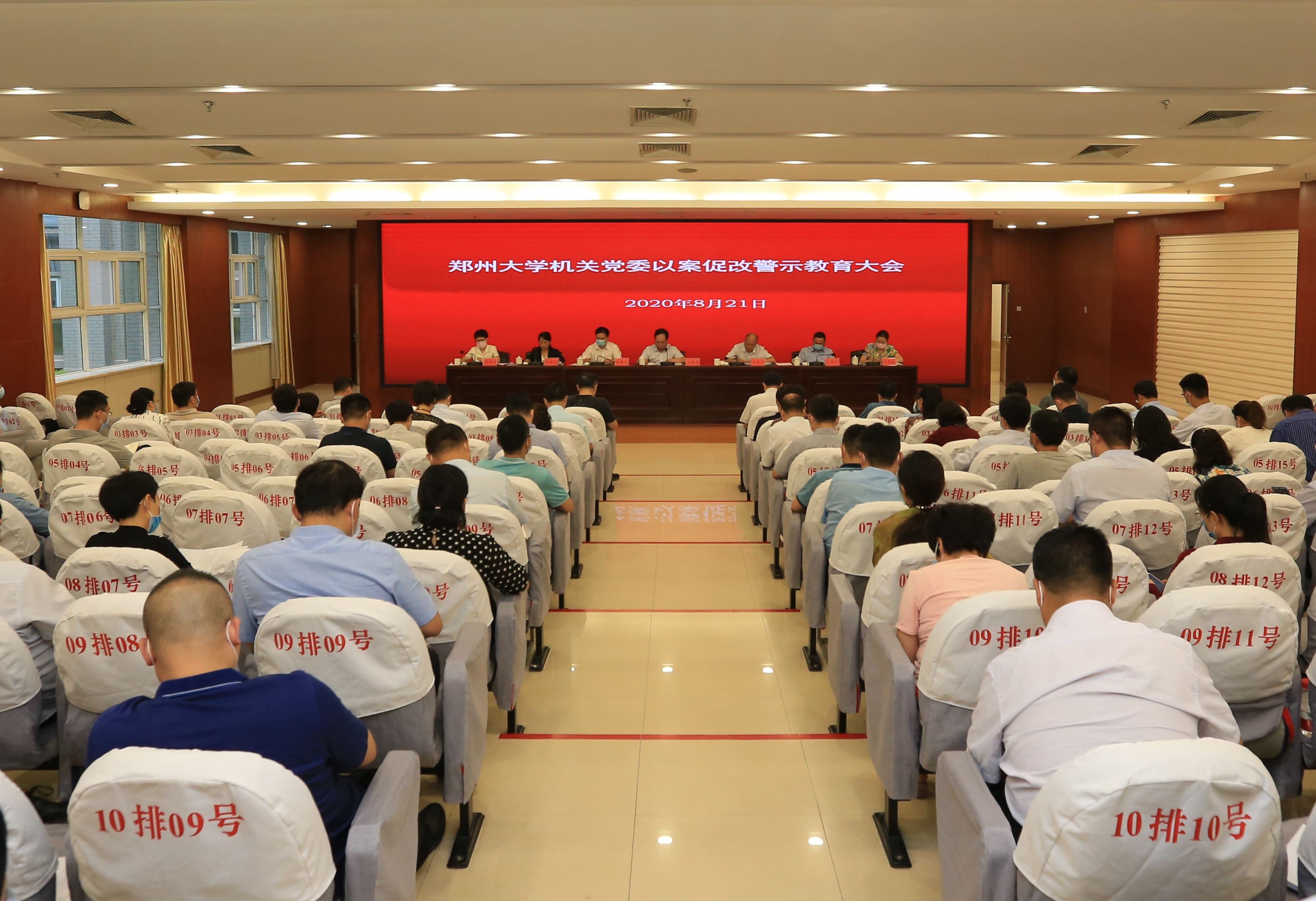 根據河南省委高校工委、省教育廳黨組在全省教育系統集中開展以案促改工作部署、鄭州大學黨委關于開展以案促改的工作方案要求,在學校以案促改工作領導小組的指導下,以案促改警示教育大會于8月21日在主校區綜合管理中心第二報告廳組織召開,校黨委副書記谷振清,校黨委常委、校紀委書記、監察專員許東升出席會議,機關黨委委員、機關紀委委員、機關各黨支部書記和機關處級領導干部130多人參加了會議。
