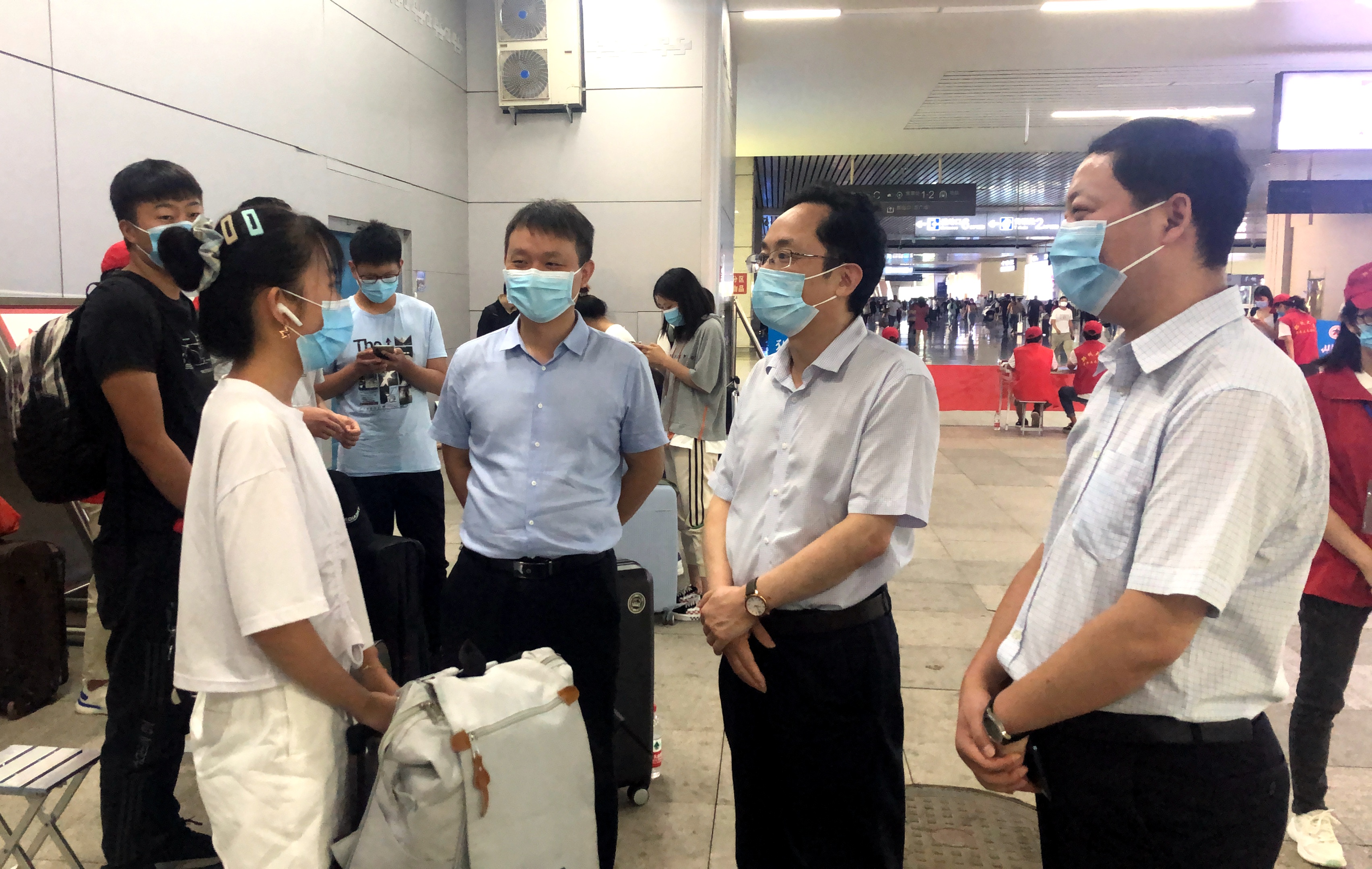 當天上午,校領導屈凌波、李興成、谷振清、許東升、關紹康、吳宏陽、董子鋼分別到南校區、北校區、醫學院校區和火車站,檢查指導返校復學工作。在檢查過程中,校領導詳細了解各項工作的準備和開展情況,與返校學生親切交流,并慰問了工作人員和志愿者。