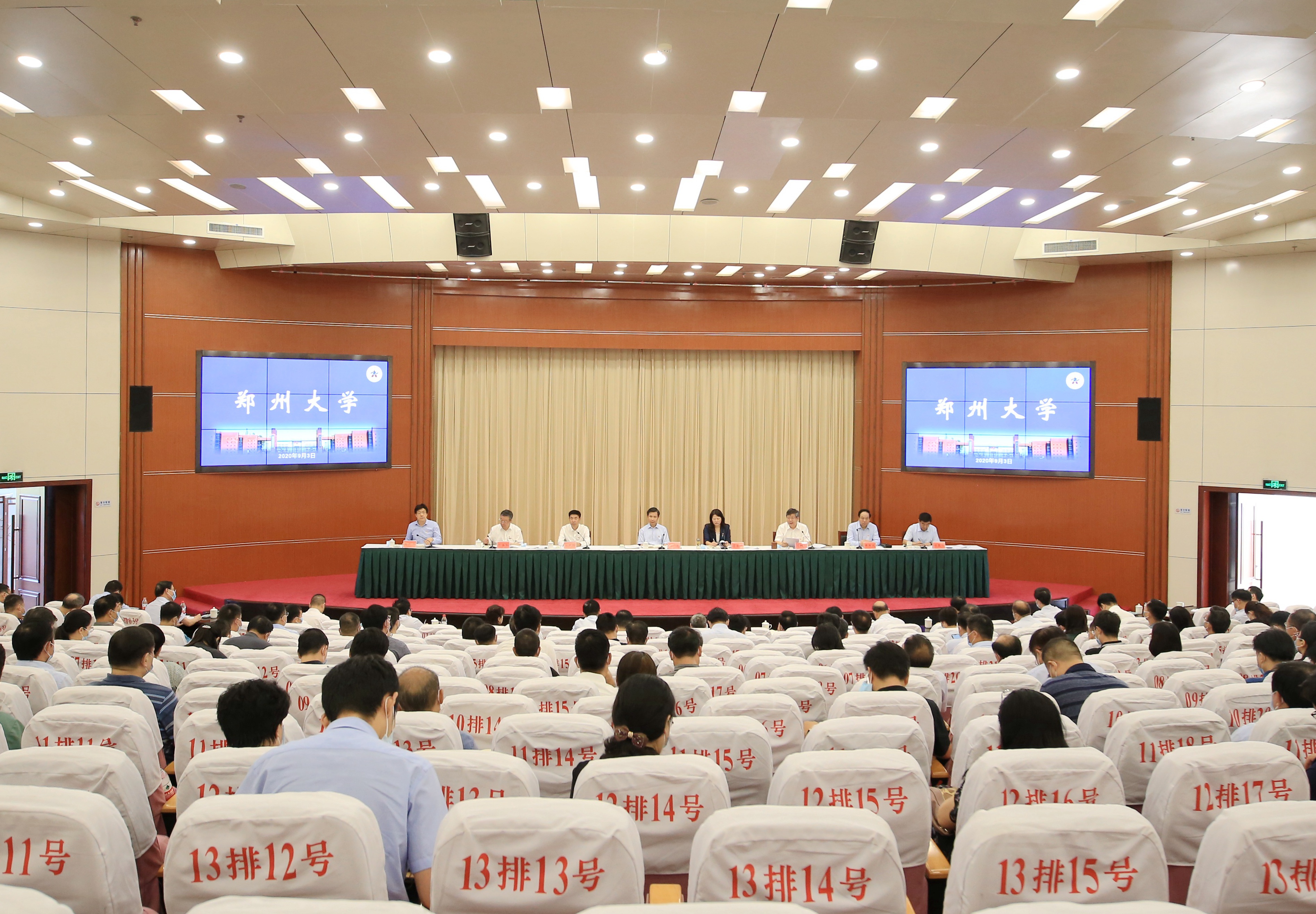 9月3日上午,鄭州大學(xué)在主校區(qū)綜合管理中心第一報告廳召開校領(lǐng)導(dǎo)班子“雙一流”建設(shè)專題培訓(xùn)成果轉(zhuǎn)化匯報會。省委常委、宣傳部部長、省委高校工委書記江凌,副省長霍金花,省教育廳黨組書記、廳長鄭邦山,省教育廳黨組成員、一級巡視員、副廳長刁玉華,校黨委書記宋爭輝,省政協(xié)副主席、校長劉炯天和校原黨委書記鄭永扣、牛書成在主席臺就座。學(xué)校領(lǐng)導(dǎo)班子全體成員,全校中層正職干部參加會議。會議由宋爭輝主持。