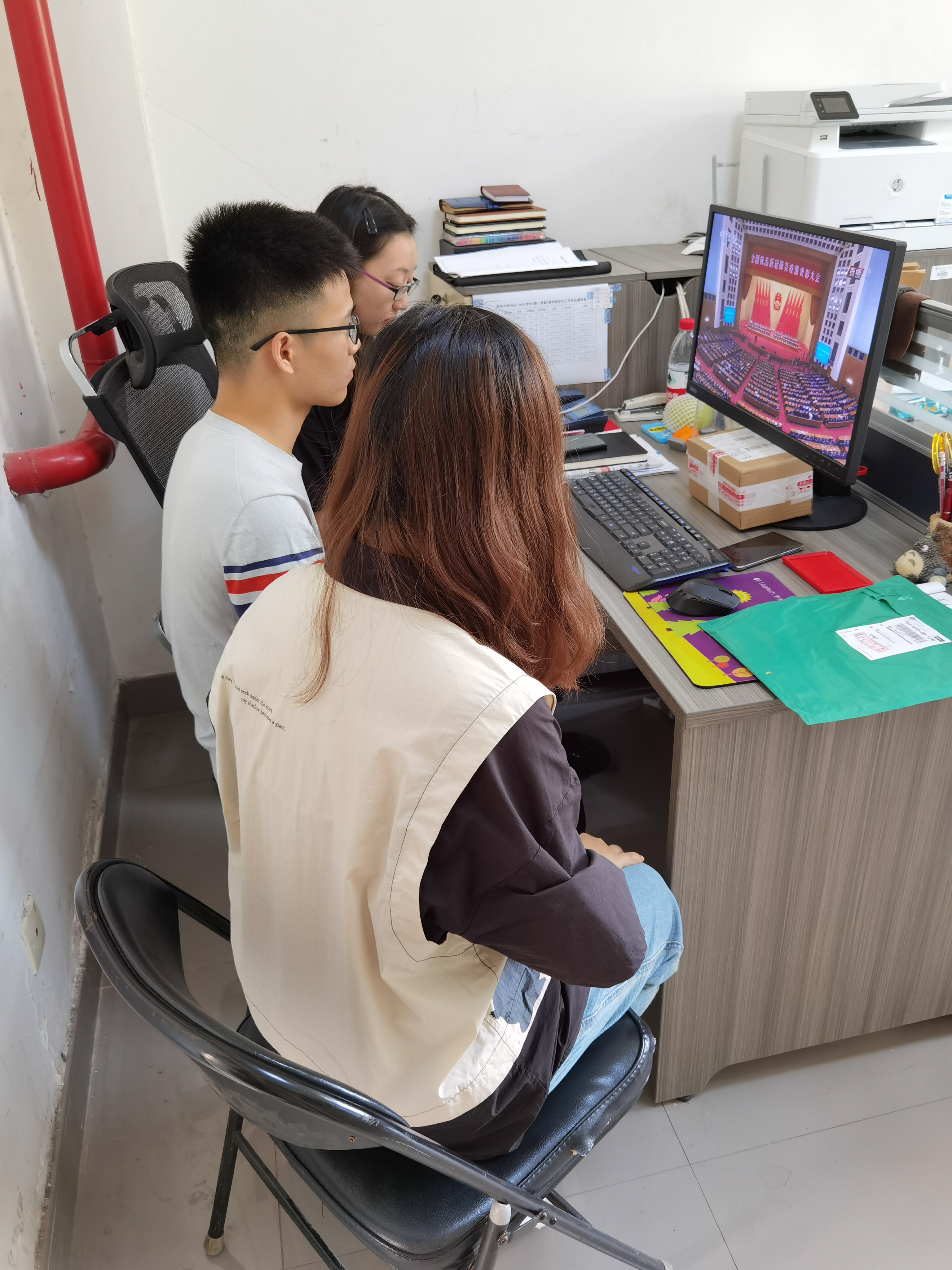 在校校領導、機關黨員干部代表觀看全國抗擊新冠肺炎疫情表彰大會