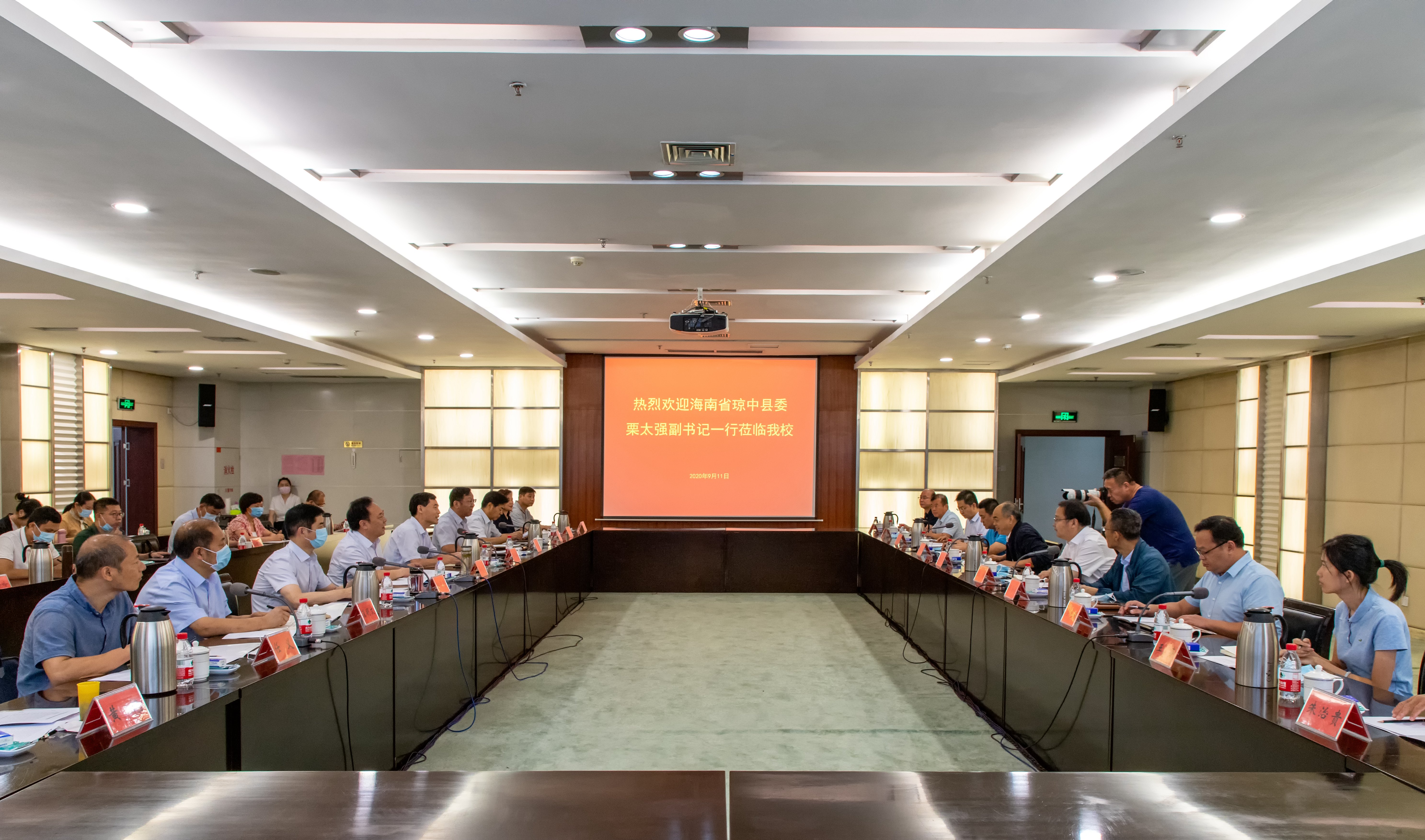 趙明皞代表學校對栗太強一行到來表示熱烈的歡迎。他表示,近年來海南不斷扛起服務國家重大戰略的責任擔當,鄭州大學也一直把服務國家重大戰略決策作為使命與擔當,今后將發揮鄭州大優勢特色學科的綜合實力,找準切入點,服務瓊中地方經濟發展需求;加強頂層設計,建立長效合作機制及合作模式,推進相關合作平臺建設,促進瓊豫合作順利推進。