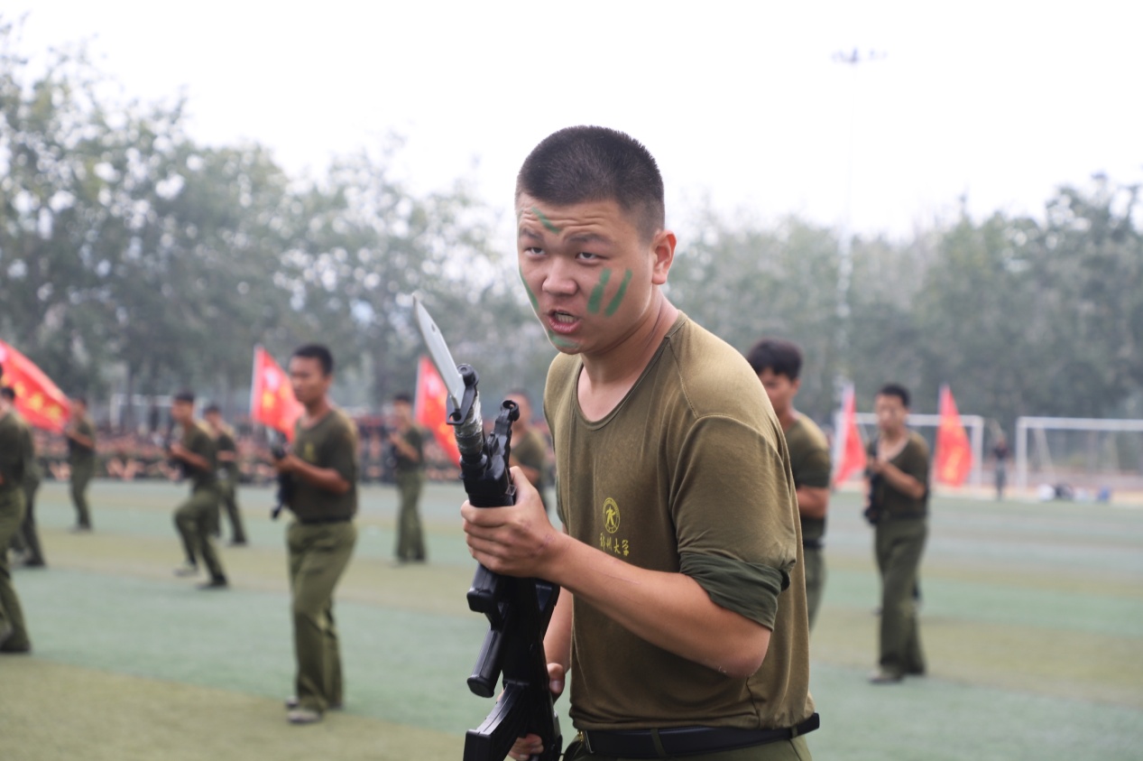 大會上,2020級的8000余名本科新生組成21個方隊,接受軍訓成果檢驗。各方隊在軍樂聲中踏著整齊的步伐經過主席臺,口號洪亮,每一個動作都充斥著堅毅與赤誠。方隊展示結束后,新生連隊表演了精彩的軍事科目,剛勁有力的軍體拳、刺殺操、匕首操、擒敵拳,展現了新生的狼性與血性。國旗護衛隊代表展示了戰術科目,第八十三集團軍某部展示了隊列動作,贏得了在場領導和師生們的熱烈掌聲。