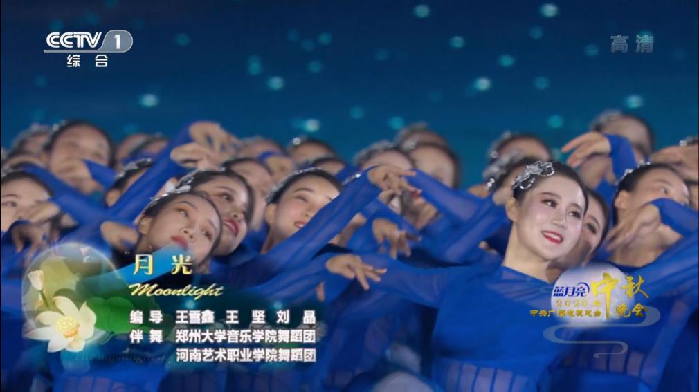 10月1日晚,2020年中秋晚會在中央電視臺播出。鄭州大學音樂學院60余名學子登上央視舞臺,參演了《月光》《星光》《無價之姐》和《海上明月》多個節目。