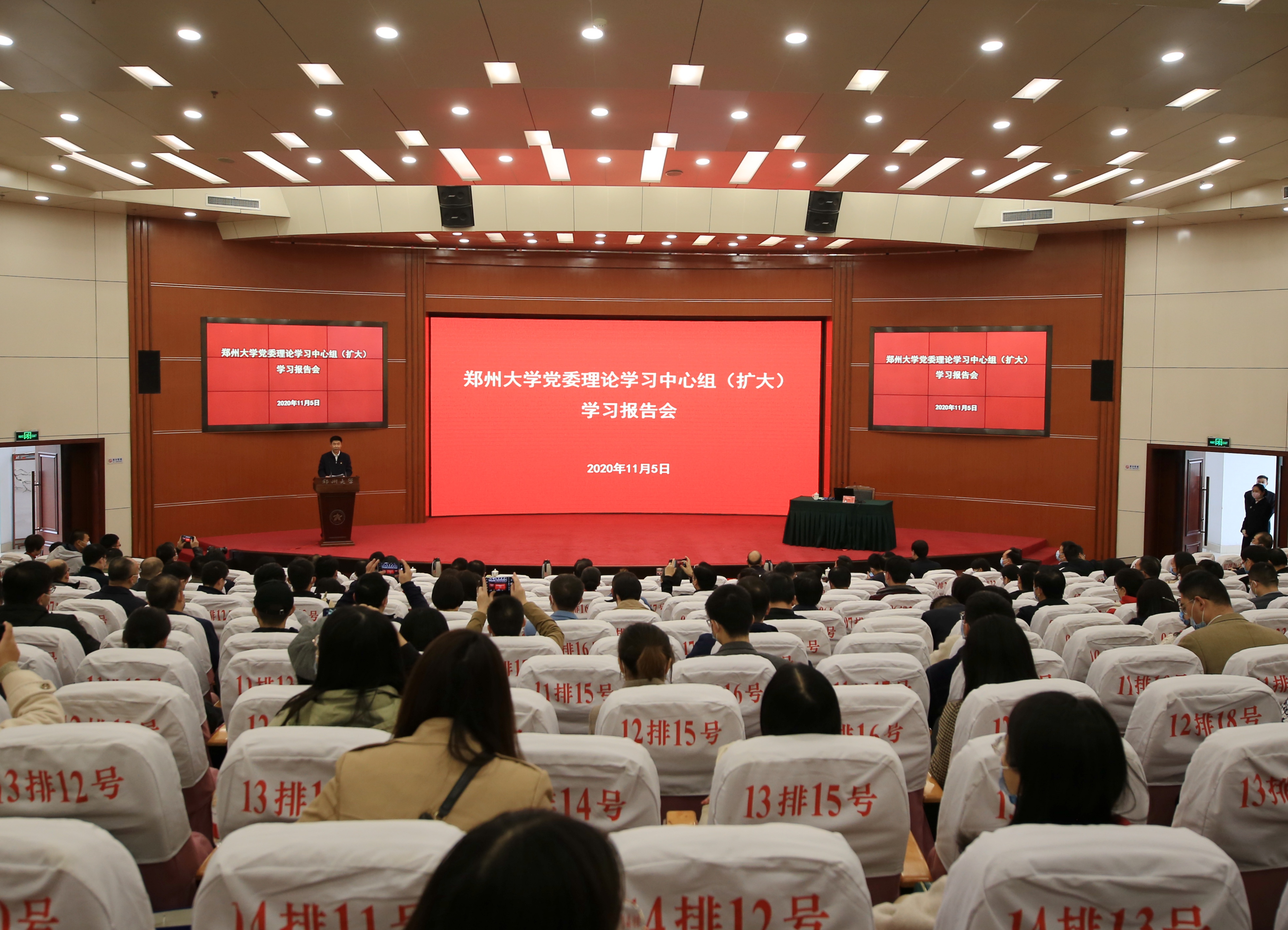 11月5日,鄭州大學在綜合管理中心第一報告廳舉行校黨委理論學習中心組(擴大)學習報告會,傳達學習黨的十九屆五中全會精神,安排部署學校學習貫徹工作。