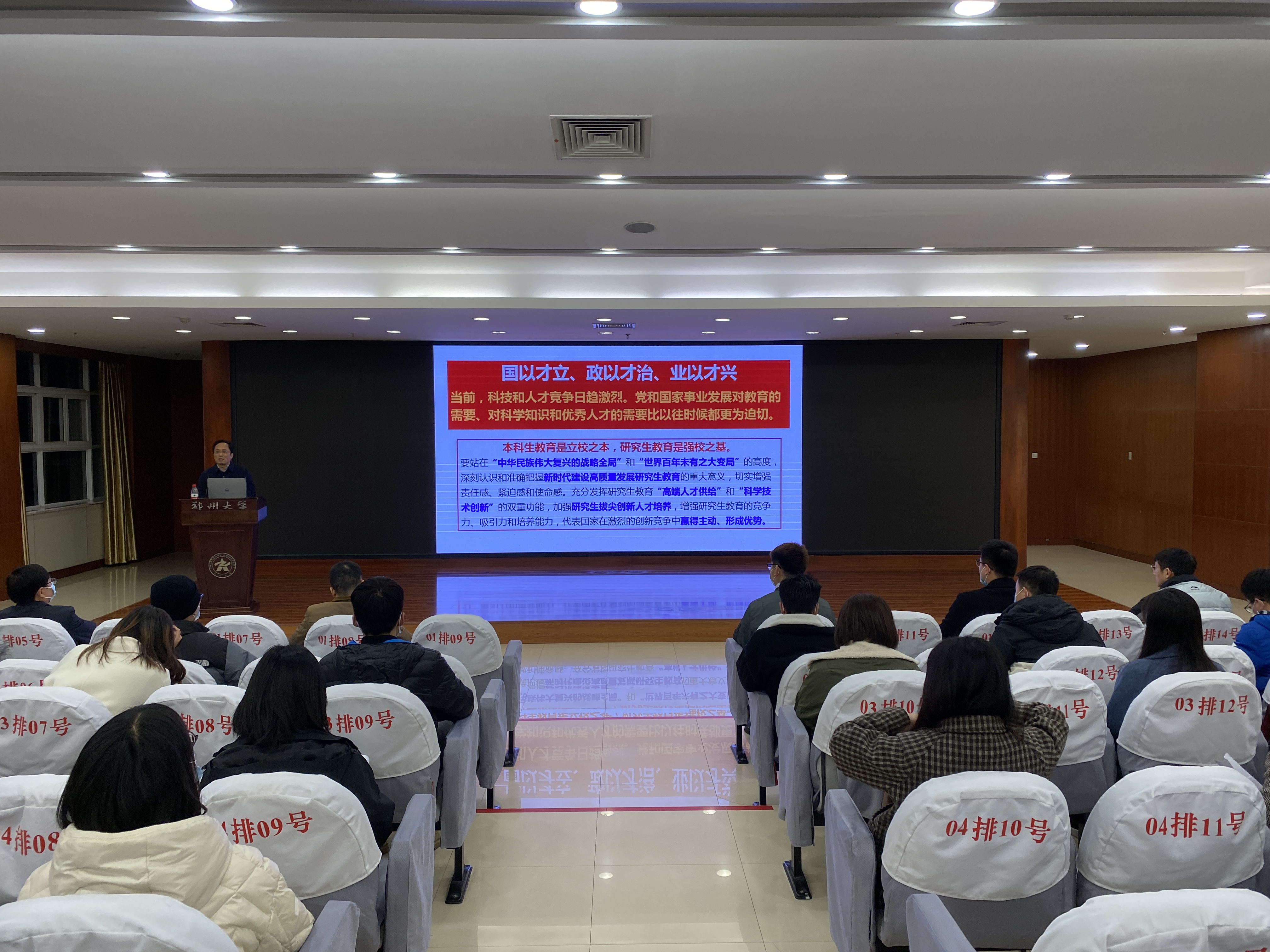 11月23日,校黨委常委、副校長關紹康為第七屆研究生優秀拔尖人才培訓班學員,上題為《聚焦拔尖創新,培育時代新人》的思政課。思政課由黨委研工部負責同志主持。