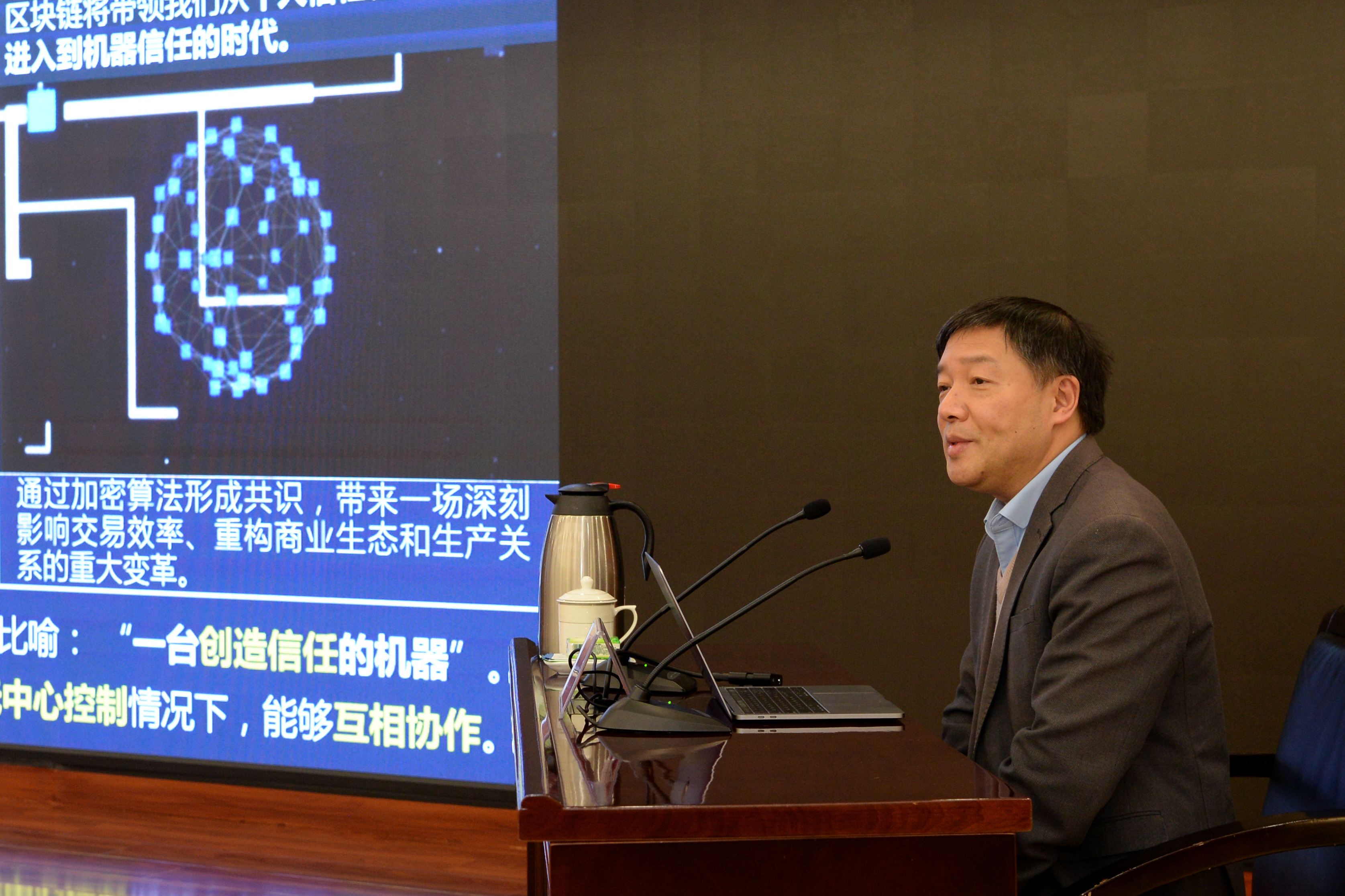 報告會上,金海以《區塊鏈——數字時代的信任重塑》為題,從區塊鏈的基本概念、發展現狀、技術挑戰與未來趨勢四個方面講解了區塊鏈及其相關知識。他以豐富的案例、翔實的數據,深入淺出地闡明了區塊鏈技術對促進我國數字經濟發展的重要意義。他指出,新時代背景下,要持續推進區塊鏈技術在各行業的積極應用,加快促進新一代信息技術與經濟社會發展的深度融合,打破價值孤島的通信壁壘,融合多鏈信息的互聯互通,釋放區塊鏈的巨大潛力,實現可信價值互聯網,推動區塊鏈技術和產業創新發展。