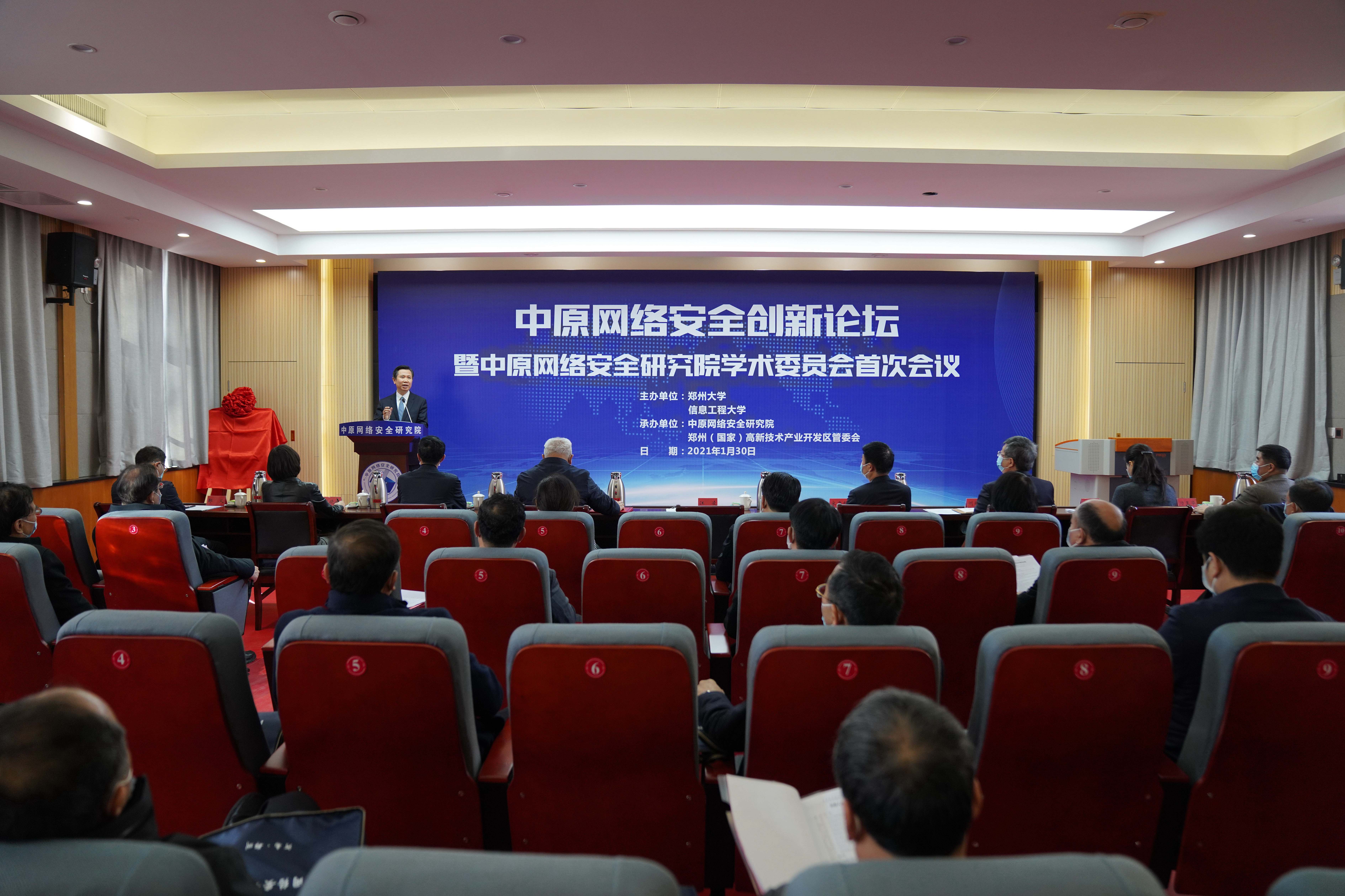 1月30日上午,由鄭州大學和信息工程大學共同主辦的中原網絡安全創新論壇在鄭州大學舉行。論壇上,中原網絡安全研究院正式揭牌成立。省委常委、宣傳部長、省委高校工委書記江凌出席并講話。中國工程院院士鄔江興在論壇上作了主旨報告。省委網信辦主任郭巖松,省發改委副主任郜義,省教育廳一級巡視員、副廳長刁玉華,省科技廳副廳長劉保民,省公安廳副廳長黎萍,省人社廳一級巡視員楊韞,鄭州市政府副秘書長張江濤,鄭州市高新區黨工委委員、管委會副主任姚五洲,鄭州大學黨委書記宋爭輝,省政協副主席、校長劉炯天,信息工程大學校長郭云飛、政委梁曉婧、副校長孟繁浩等出席。國內網絡安全領域多位知名專家以及相關單位負責同志參加論壇。論壇由鄭州大學副校長趙明皞主持。