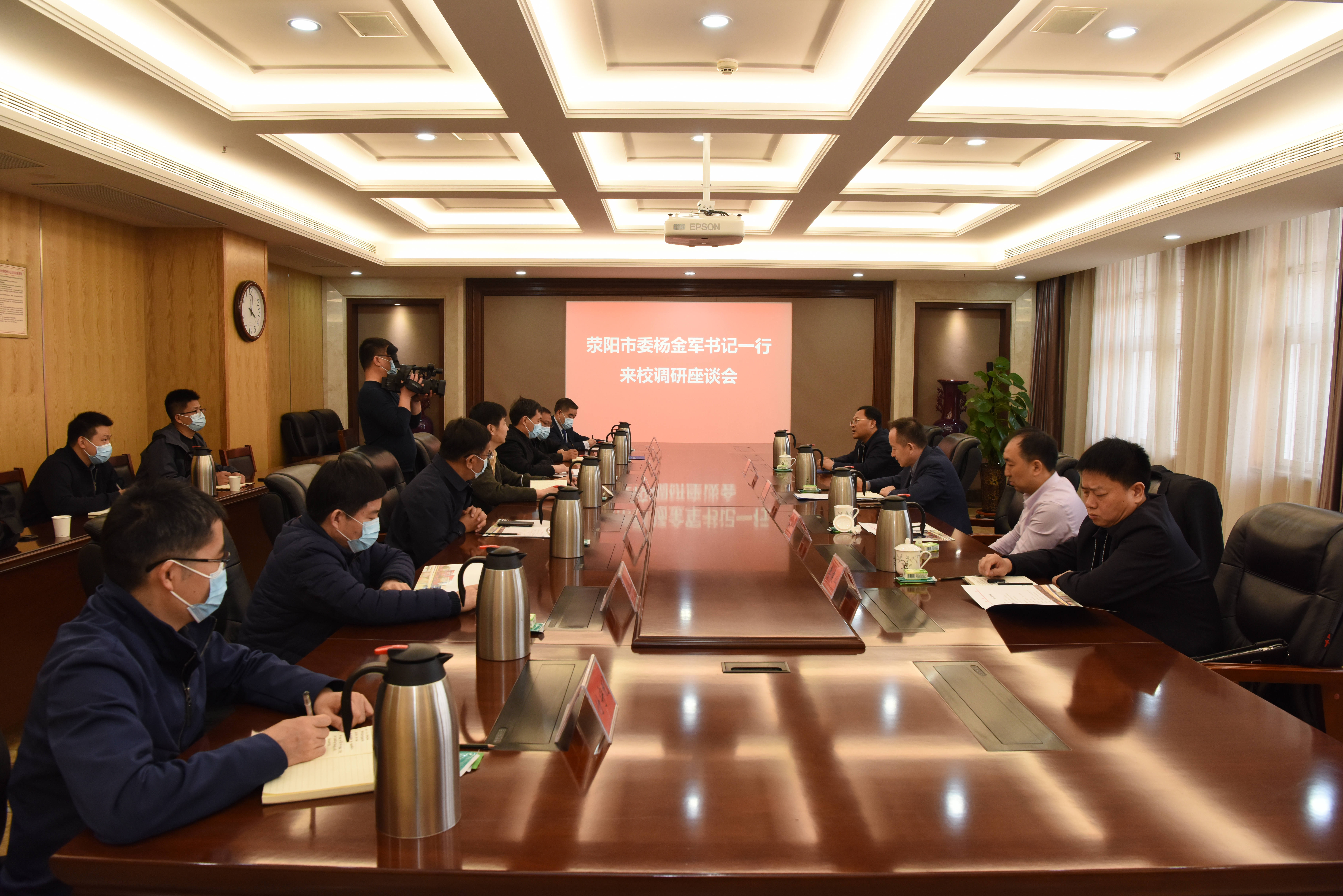 2月22日,滎陽市委書記楊金軍一行來校進行訪問,校黨委副書記、副校長王宗敏,副校長趙明皞會見來訪客人。雙方開展座談交流,探討深化校地合作事宜。