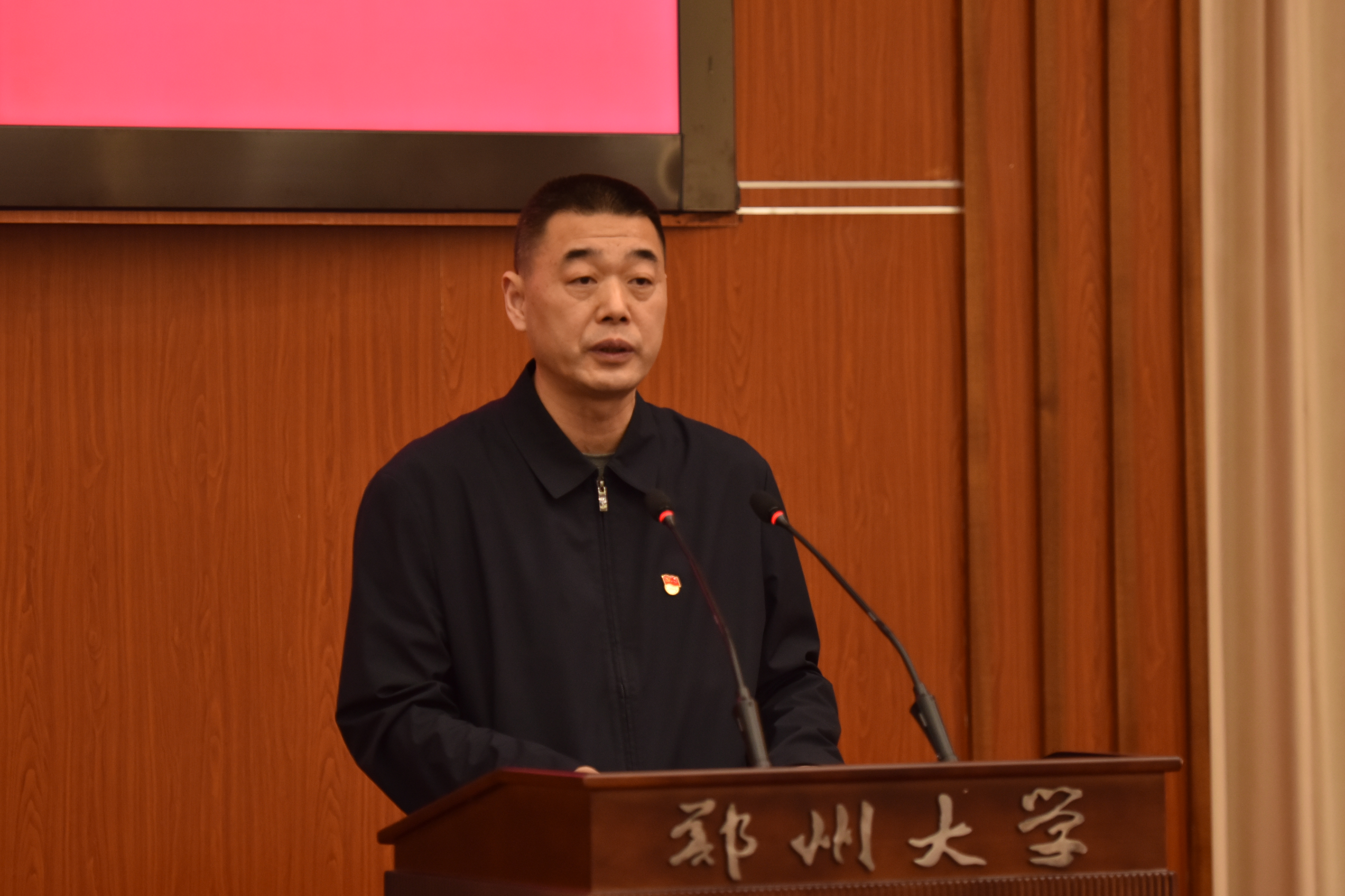 校黨委副書記吳宏陽講話。他指出,2020年是特殊而不平凡的一年,鄭州大學師生高舉習近平新時代中國特色社會主義偉大旗幟,砥礪前行,書寫了一流大學建設的“奮進之筆”。這一年,鄭大師生挺起脊梁,把愛國鐫刻在疫情防控的偉大斗爭中;這一年,鄭大學子矢志拼搏,把奮斗熔鑄在抗擊疫情的生動實踐中;這一年,學工隊伍求是擔當,把初心印刻在鑄魂育人的非凡答卷上。他對2021年學生工作高質量發展提出四點要求:一是要緊扣建黨100周年重大主題,深入推進黨史學習教育;二是要堅持培元固本,加快構建精準思政工作體系;三是要堅持一流標準,著力提升人才培養質量;四是要聚力隊伍建設,努力鍛造一支高素質的輔導員隊伍。他希望學工戰線全體同志在習近平新時代中國特色社會主義思想指引下,牢記教育初心、不忘育人使命,以“功成不必在我”的精神境界、“功成必定有我”的歷史擔當,鼓足干勁、力爭上游,奮力書寫大美學工新篇章,開辟學生工作高質量發展新境界,創造無愧初心、無愧時代的驕人業績,向黨的百年華誕誠摯獻禮。