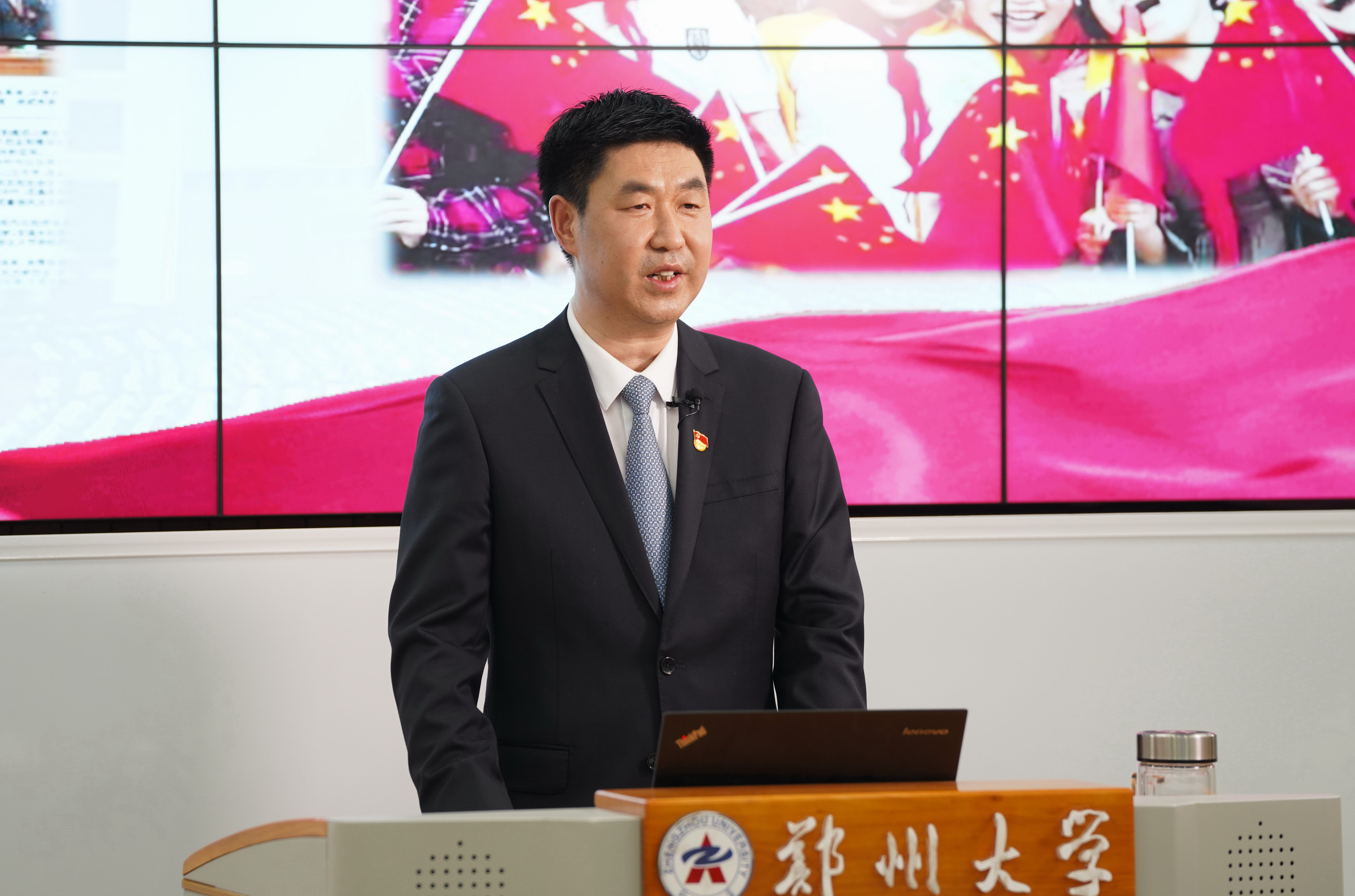 為慶祝中國共產黨成立100周年,高質量開展好黨史學習教育,引導全校師生學史明理、學史增信、學史崇德、學史力行,5月20日下午,校黨委書記宋爭輝以《百年大黨 人民至上》為題為全校師生上黨史大課,鄭州大學派駐泌陽縣閆洼村原第一書記潘華、第一附屬醫院副院長趙松共同授課。課程以視頻在線直播形式進行,全體教職工和全日制本碩博在校學生,分別在教室、報告廳、實驗室、宿舍等場所聆聽課程。