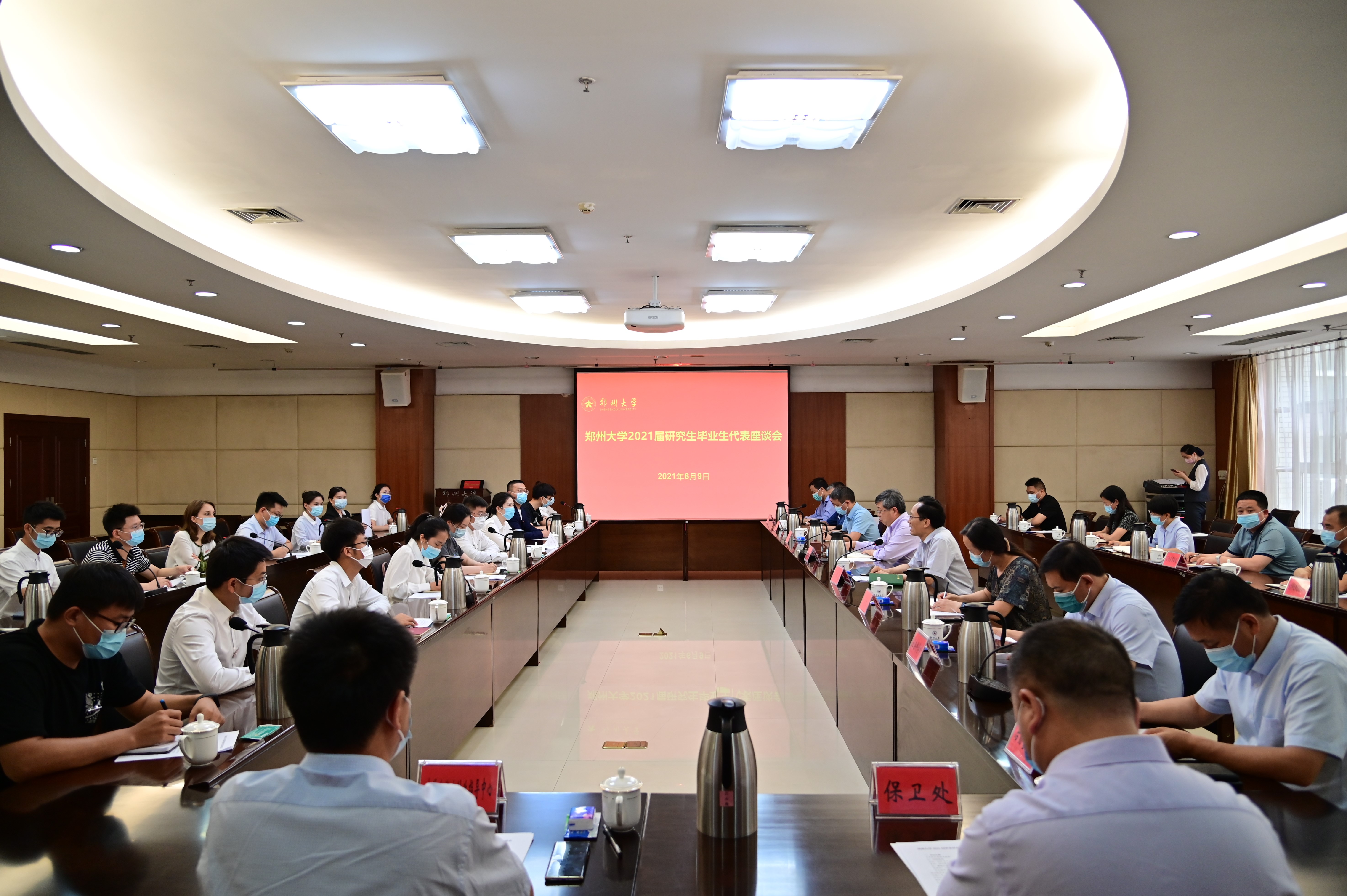 6月9日下午,河南省政協副主席、校長劉炯天在主校區第四會議室與2021屆畢業研究生代表座談交流。校黨委常委、副校長關紹康主持座談會。