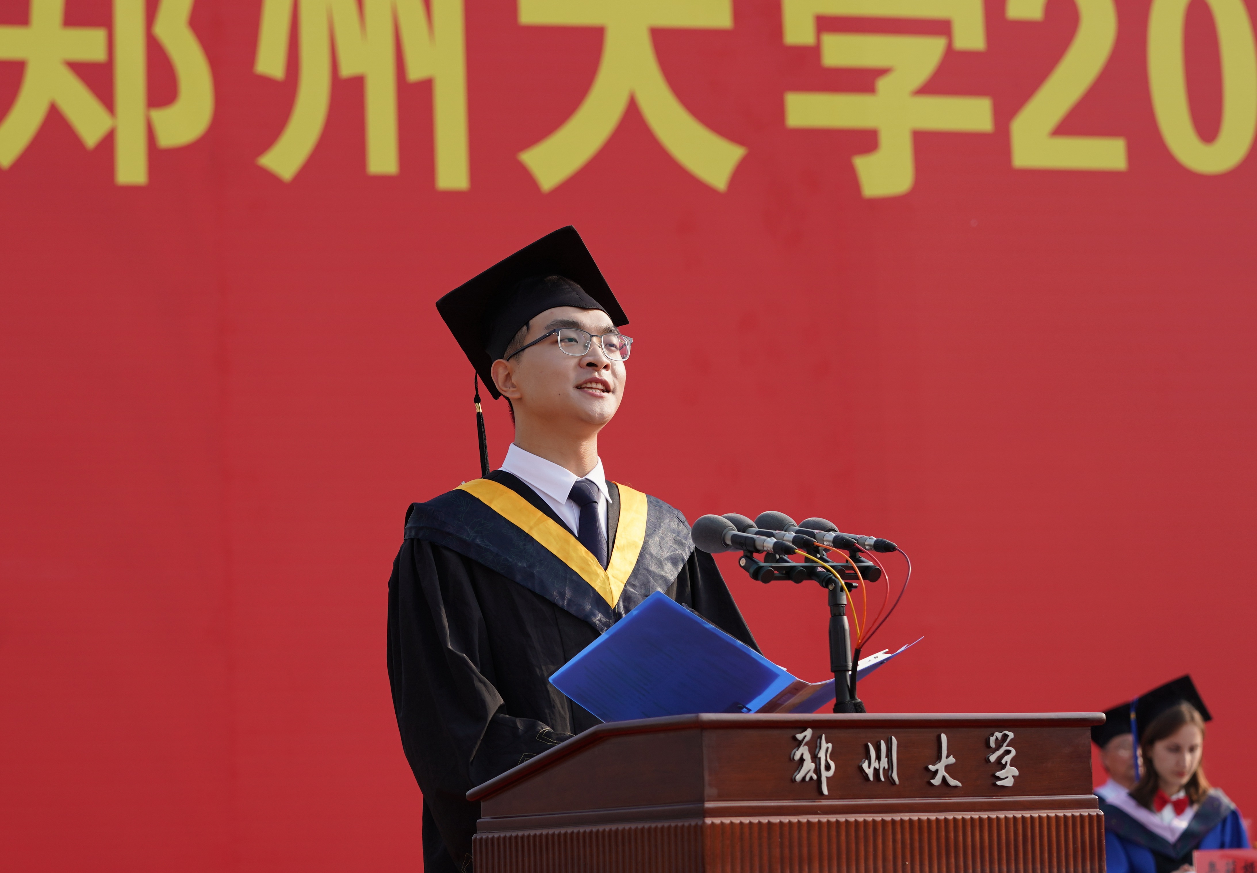 他講到,八年多來,送給畢業生共八個字:自信、開放、尊重、堅韌;表達兩層意思:文化與品格,以鄭大之風,塑鄭大人之格。今年又講尊重,既是在說尊重教育與學會尊重,又通過黨史教育與學校近百年辦學歷史學習,把尊重的認識與文化內涵提高到認識論與思想方法上,提高到履職盡責與家國情懷上,進一步豐滿同學們的鄭大人品格。