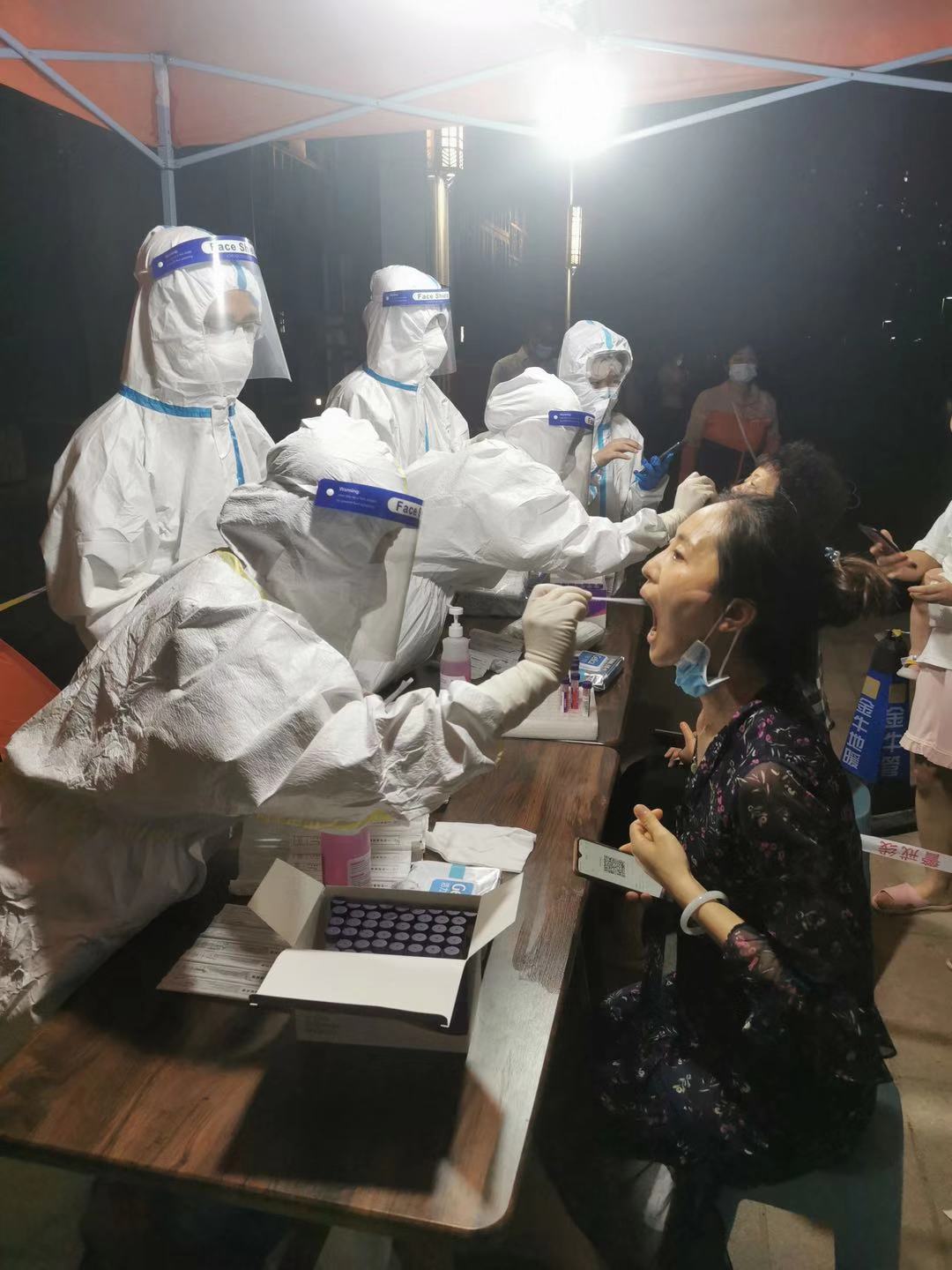 7月31日晚8點,醫務人員集結完畢,奔赴全市核酸篩查采樣第一線。