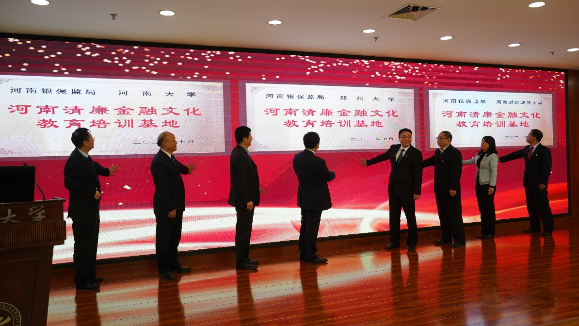 根據(jù)合作計(jì)劃,河南銀保監(jiān)局與三所高校將共建“河南清廉金融文化教育培訓(xùn)基地”。與會(huì)領(lǐng)導(dǎo)共同為“河南清廉金融文化教育培訓(xùn)基地”揭牌。