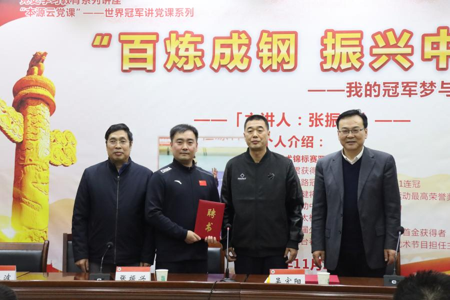 張振興以《百煉成鋼,振興中華》為題,結合自己的武術職業生涯,講述了自己的成長經歷。他希望廣大青年能把個人的理想追求融入到黨和國家事業中去,為國家發展貢獻自己的一份力量,能夠迎難而上、志存高遠、不畏艱險,勇于擔當。