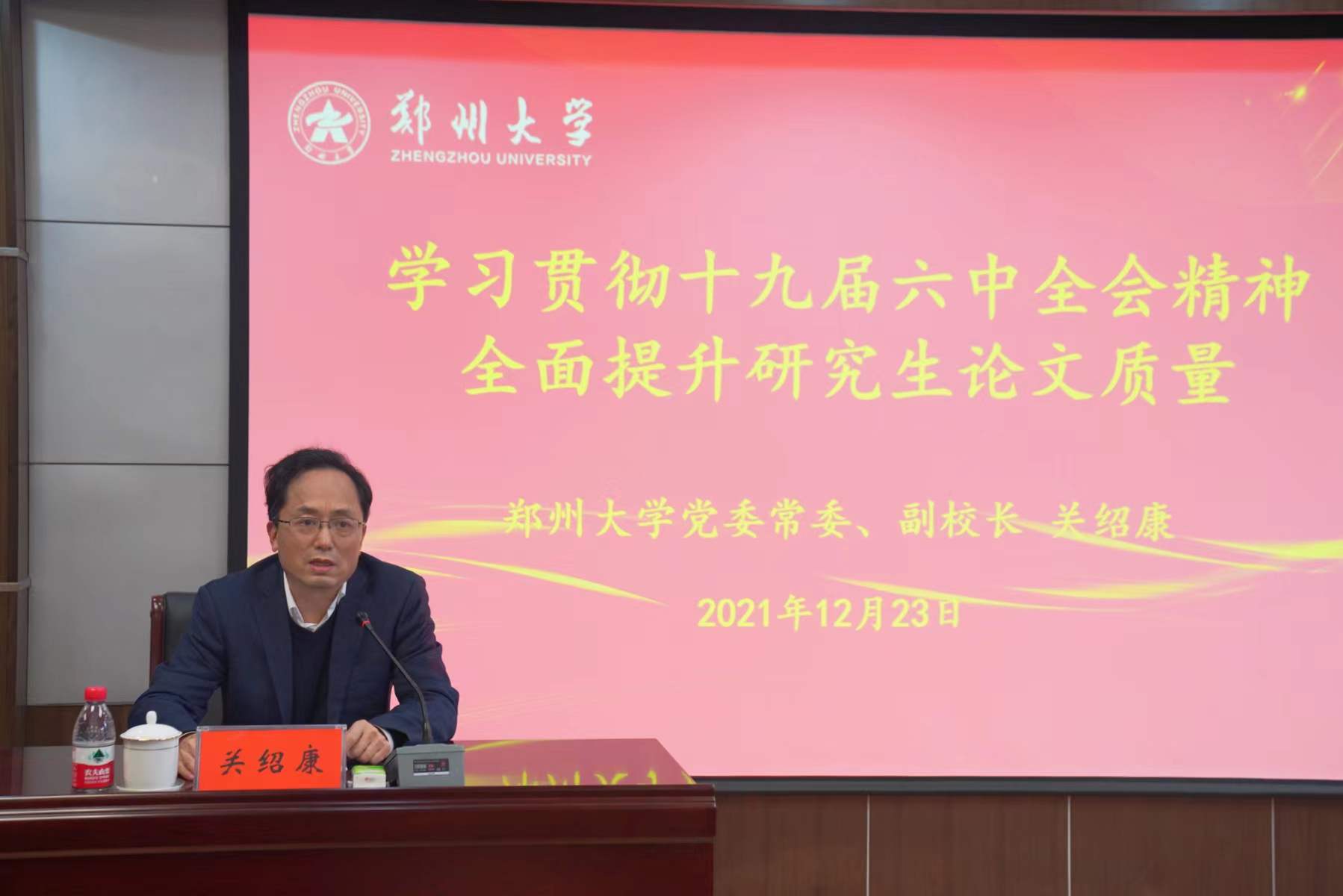 關紹康表示,黨的十九屆六中全會系統總結了黨走過的光輝歷程、取得的輝煌成就和寶貴經驗,使新時代中國共產黨人看清楚了過去為什么能夠成功、弄明白了未來怎樣才能繼續成功,詮釋了“中國共產黨為什么能”的深層邏輯和勝利密碼。他指出,面向新的百年征程,研究生教育必須全面貫徹習近平新時代中國特色社會主義思想,繼續承擔好為黨育人、為國育才的神圣使命,堅持辦學正確政治方向,堅持立德樹人根本任務,構建高水平人才培養體系,培養一批又一批高素質的社會主義建設者和接班人;必須進一步貫徹落實全國教育大會和《深化新時代教育評價改革總體方案》精神,扭轉不科學的教育評價導向,突出質量導向,加快推進教育現代化,辦好人民滿意的大學;必須著眼未來、規劃當下,適應高質量發展,全面深化研究生教育體系改革,推動研究生教育體系調整升級,創造有更多機會、更優品質、更佳體驗、更強力量、更大影響的研究生教育。