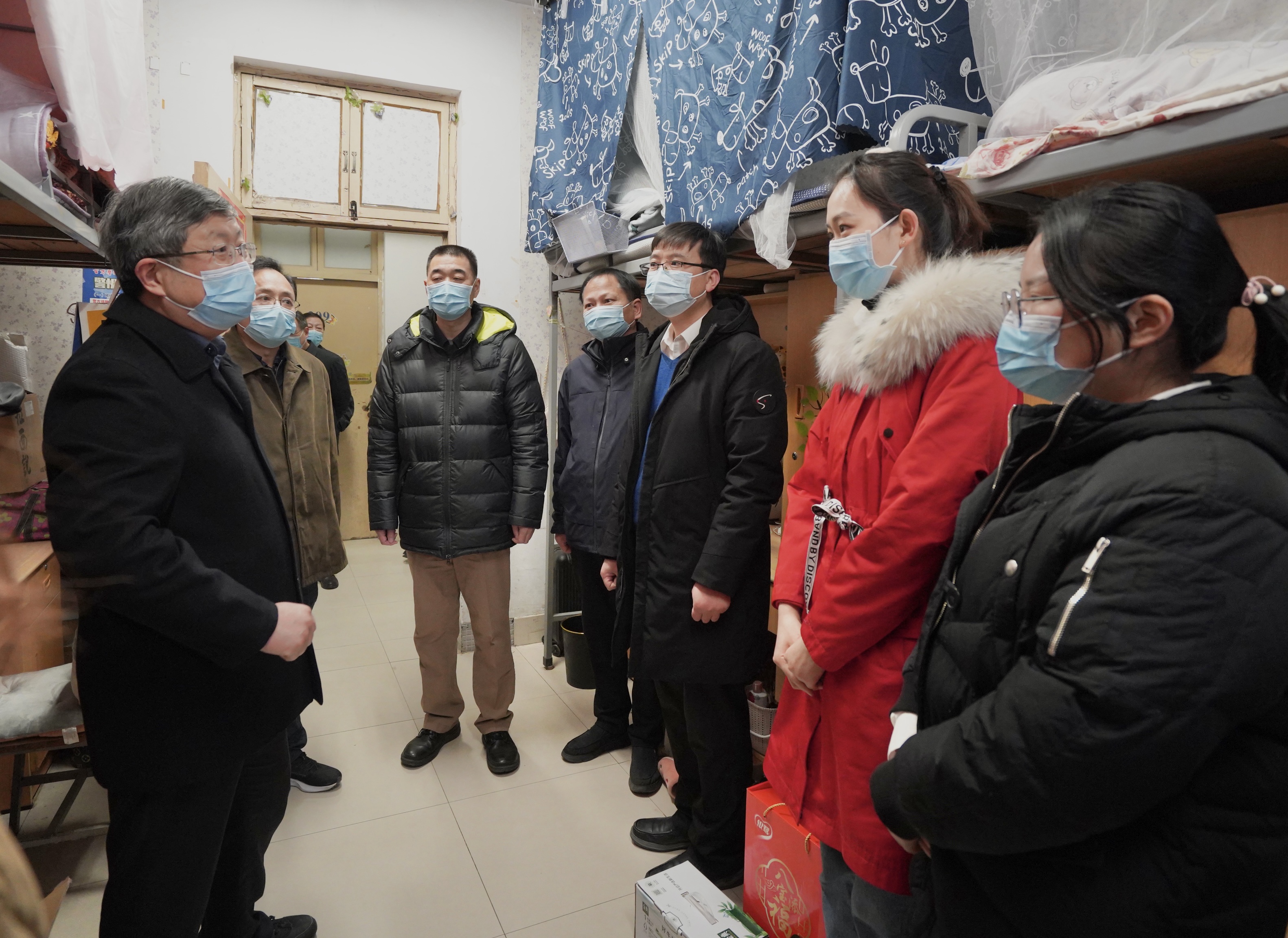 劉炯天來(lái)到松園留校學(xué)生集中住宿區(qū),與同學(xué)們面對(duì)面交流,叮囑大家要給家人送去新春祝福,有困難隨時(shí)提出,學(xué)校一定會(huì)全力支持保障,并送上學(xué)校精心準(zhǔn)備的新年大禮包。得知醫(yī)學(xué)科學(xué)院、口腔醫(yī)學(xué)院、公共衛(wèi)生學(xué)院等醫(yī)學(xué)生積極參與疫情防控流調(diào)工作和科研攻關(guān),他指出,同學(xué)們?cè)卺t(yī)學(xué)實(shí)踐中受教育、長(zhǎng)才干、作貢獻(xiàn),充分展示了鄭大青年的責(zé)任與擔(dān)當(dāng)。看到來(lái)自臺(tái)灣的同學(xué)第一次在鄭州過(guò)年,他鼓勵(lì)同學(xué)之間要加強(qiáng)互動(dòng),在兩岸文化碰撞中增進(jìn)感情,“希望大家把學(xué)校當(dāng)成一個(gè)大家庭,互相尊重、包容和友愛(ài)”。