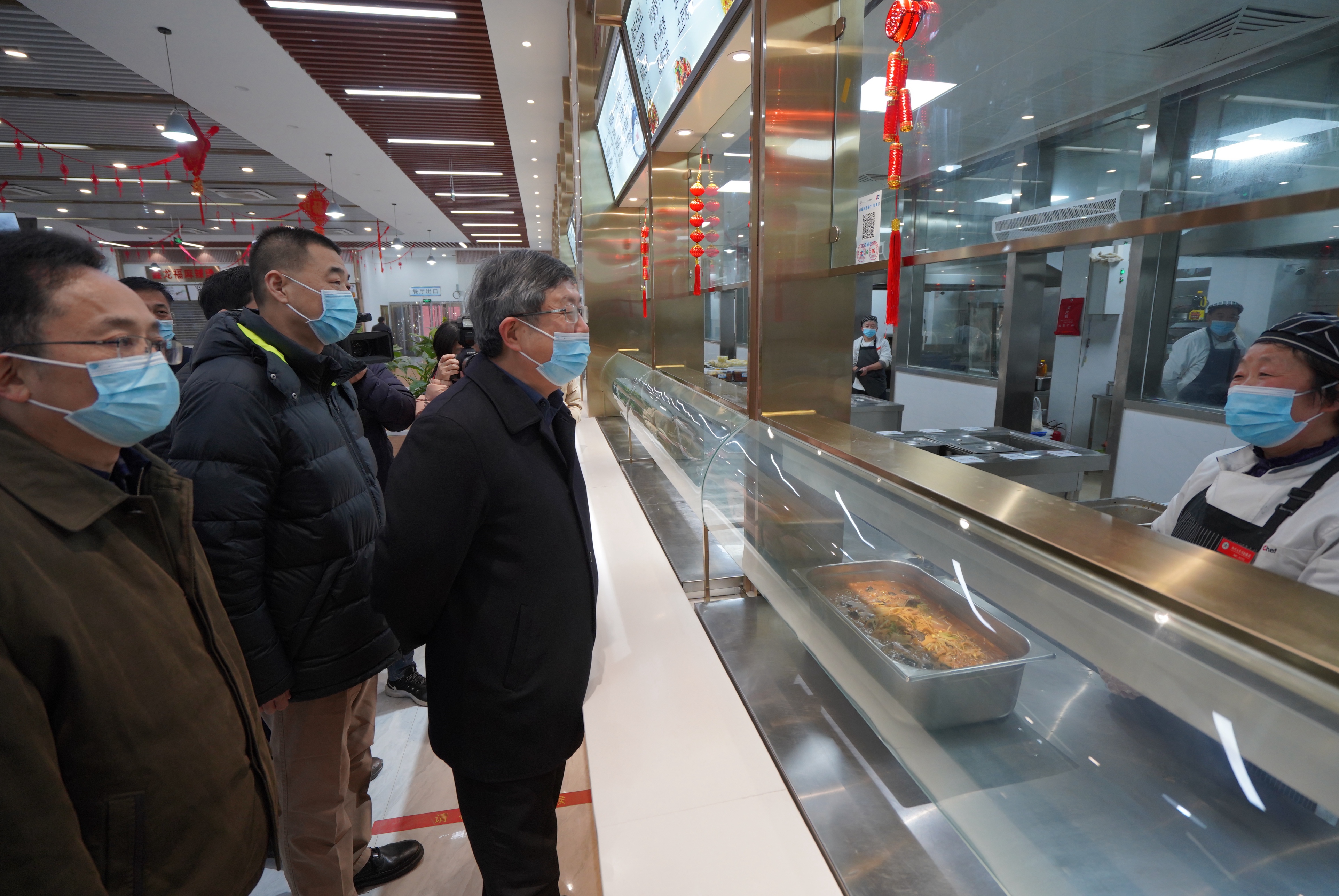 在競(jìng)舸園餐廳,劉炯天查看餐飲供應(yīng)情況,強(qiáng)調(diào)要豐富菜品種類(lèi),滿(mǎn)足師生個(gè)性化需求,并向堅(jiān)守一線(xiàn)的后勤職工表示慰問(wèn)和感謝。他要求相關(guān)部門(mén)要貼心細(xì)致做好服務(wù)保障,落實(shí)疫情防控、食品衛(wèi)生和安全生產(chǎn)要求,關(guān)心關(guān)愛(ài)每一名留校學(xué)生,統(tǒng)籌謀劃春季開(kāi)學(xué)準(zhǔn)備工作,確保師生生命健康和校園平安穩(wěn)定,營(yíng)造溫馨和諧的節(jié)日氛圍。
