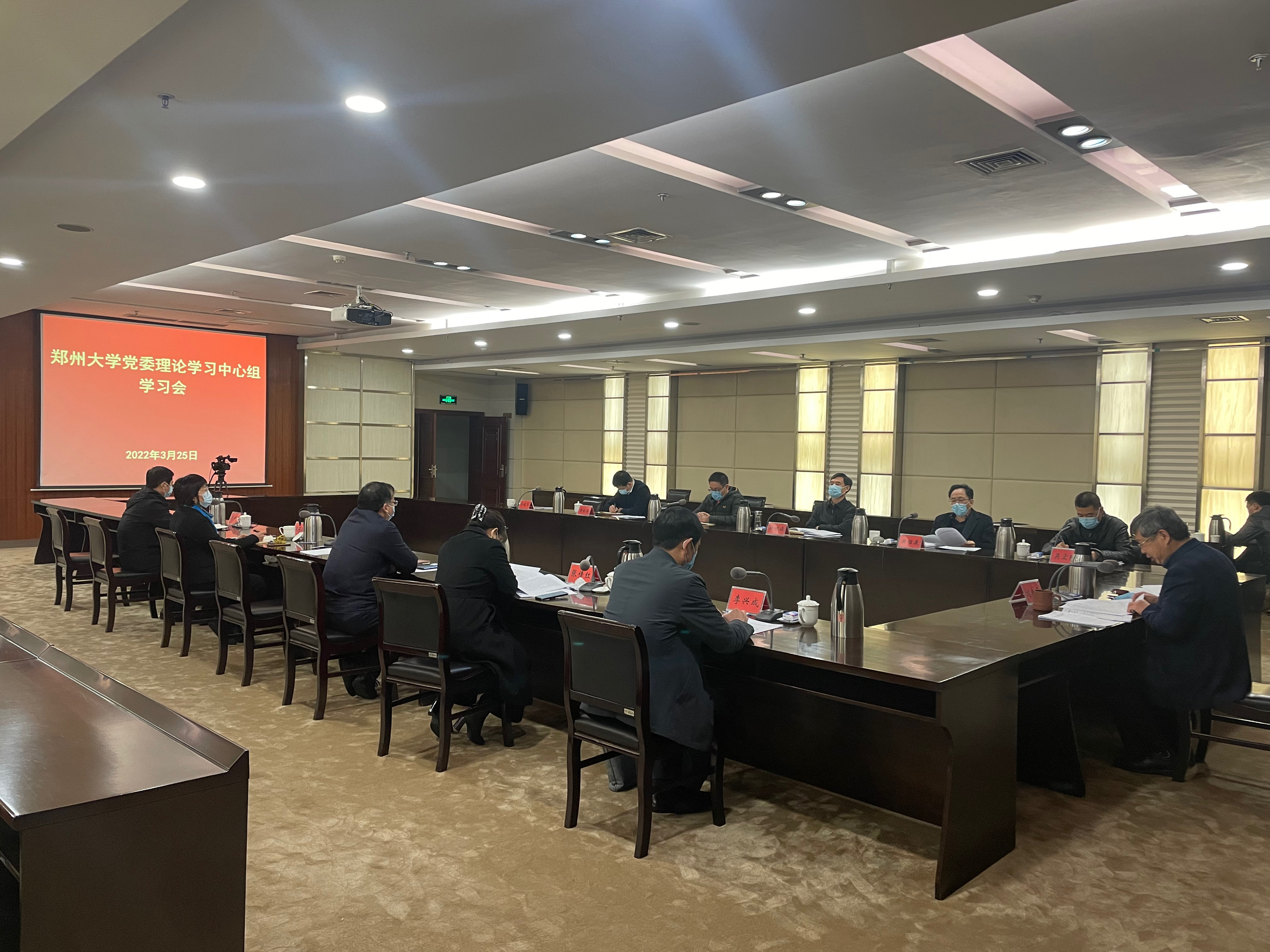 3月25日下午,鄭州大學召開黨委理論學習中心組學習會。會議以線上線下相結合的方式舉行,全體在校校領導,校黨委理論學習中心組成員參加會議。會議由省政協副主席、校黨委書記、校長劉炯天主持。