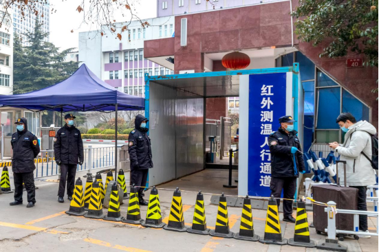 聚焦安全管理辦實(shí)事。優(yōu)化閉環(huán)管理措施和校園封閉管理設(shè)施,在校園西門、辦公樓宇均設(shè)置掃碼測溫,封閉國重室、出版社的出入口,加強(qiáng)口腔醫(yī)院小門的管理,封堵校園防控漏洞,嚴(yán)格校門樓宇出入管理,守好校門第一道關(guān)口;申報(bào)教學(xué)區(qū)視頻監(jiān)控系統(tǒng)維修專項(xiàng),加大校園巡邏力度,妥善處理好師生進(jìn)出校門中的熱點(diǎn)、難點(diǎn)問題,既堅(jiān)持原則,又做到人性化服務(wù);適時(shí)優(yōu)化工作程序,采用教職工與學(xué)生分離、辦公區(qū)與教學(xué)區(qū)分離、校園與家屬區(qū)分離的方式,分設(shè)采樣點(diǎn),確保核酸檢測平穩(wěn)有序。