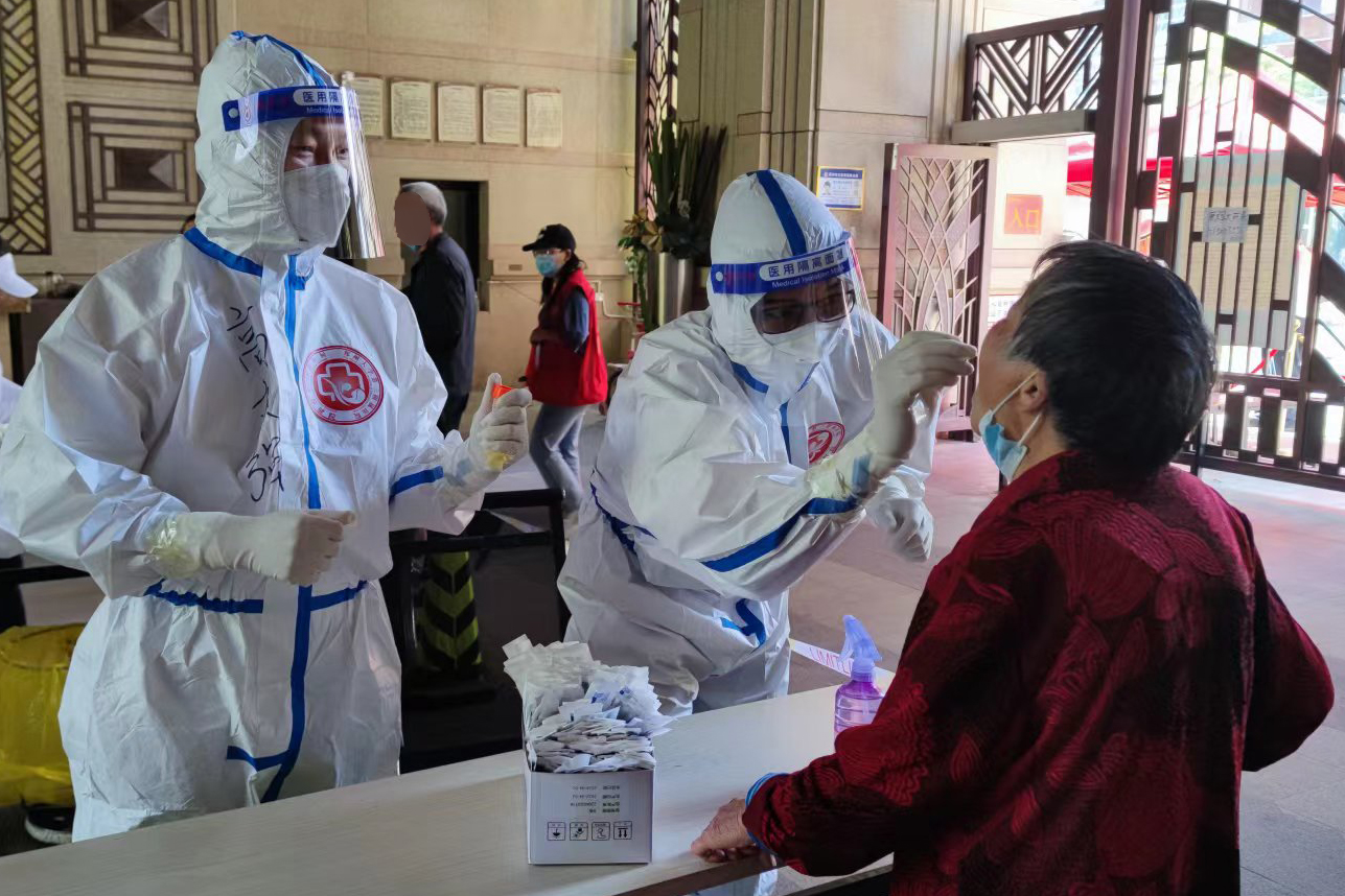 一名黨員就是一面旗幟,一名黨員引領(lǐng)一支隊(duì)伍。“作為一名黨員,危難時(shí)刻,我就應(yīng)該沖鋒在前,和市民共渡難關(guān)。”認(rèn)知障礙二科主任高永強(qiáng)是核酸采樣隊(duì)的一名領(lǐng)隊(duì),5月5日已經(jīng)是他連續(xù)第4天帶隊(duì)出征,連續(xù)戰(zhàn)斗的他總是身先士卒,上門采樣、給隊(duì)員鼓勁、與社區(qū)溝通,他用實(shí)際行動(dòng)帶動(dòng)著同事,和大家一起堅(jiān)守在疫情防控第一線。