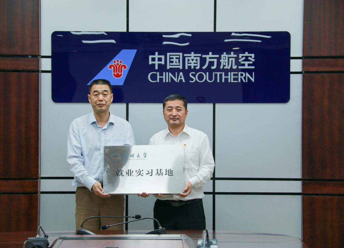 校黨委副書記吳宏陽向中國南方航空河南公司授“鄭州大學就業實習基地”牌