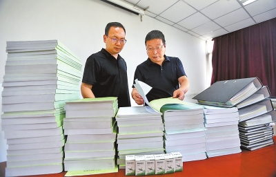 阿茲夫定研發(fā)過程中,每一步實驗結(jié)果都保留著原始數(shù)據(jù)。8月6日中午,???biāo)教授和孟勇剛老師一起整理阿茲夫定部分資料。單是申請上市的資料,摞起來就有一人多高。