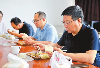 8月6日14時,???biāo)要為一名博士生的論文舉行開題答辯。由于時間緊張,實驗室的老師們點了盒飯當(dāng)午餐,大家邊吃邊討論實驗情況。