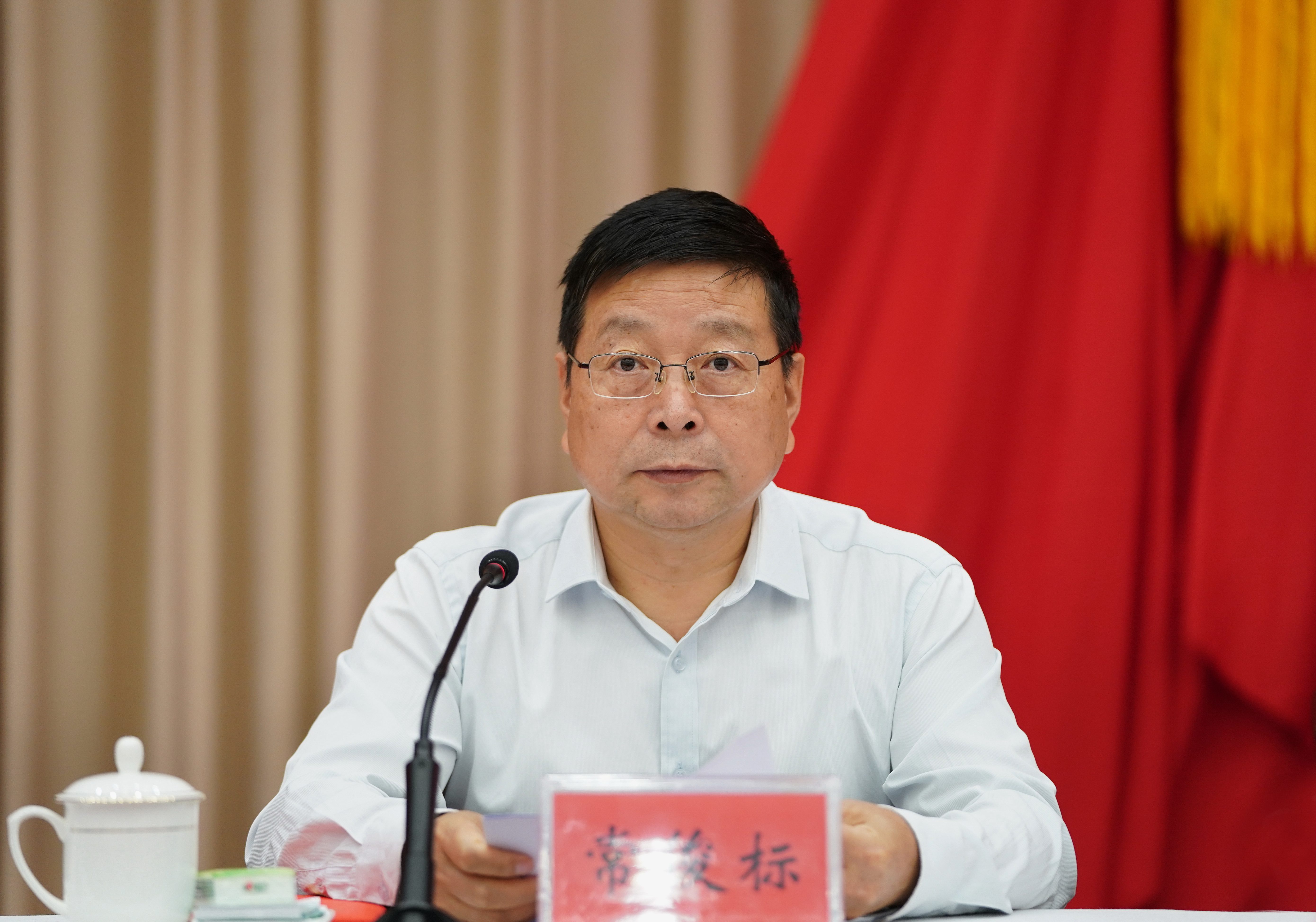 ??嗽谥鞒种v話中表示,全校教職員工要以先進為標桿,以模范為榜樣,深入學習貫徹習近平新時代中國特色社會主義思想,堅定理想信念、厚植愛國情懷、涵養高尚師德,勇擔為黨育人、為國育才使命,為培養擔當民族復興大任的時代新人、社會主義合格建設者和可靠接班人作出新的更大的貢獻,以昂揚向上的精神面貌和立德樹人的扎實行動,交上一份出彩答卷。(魏洪波 攝影)