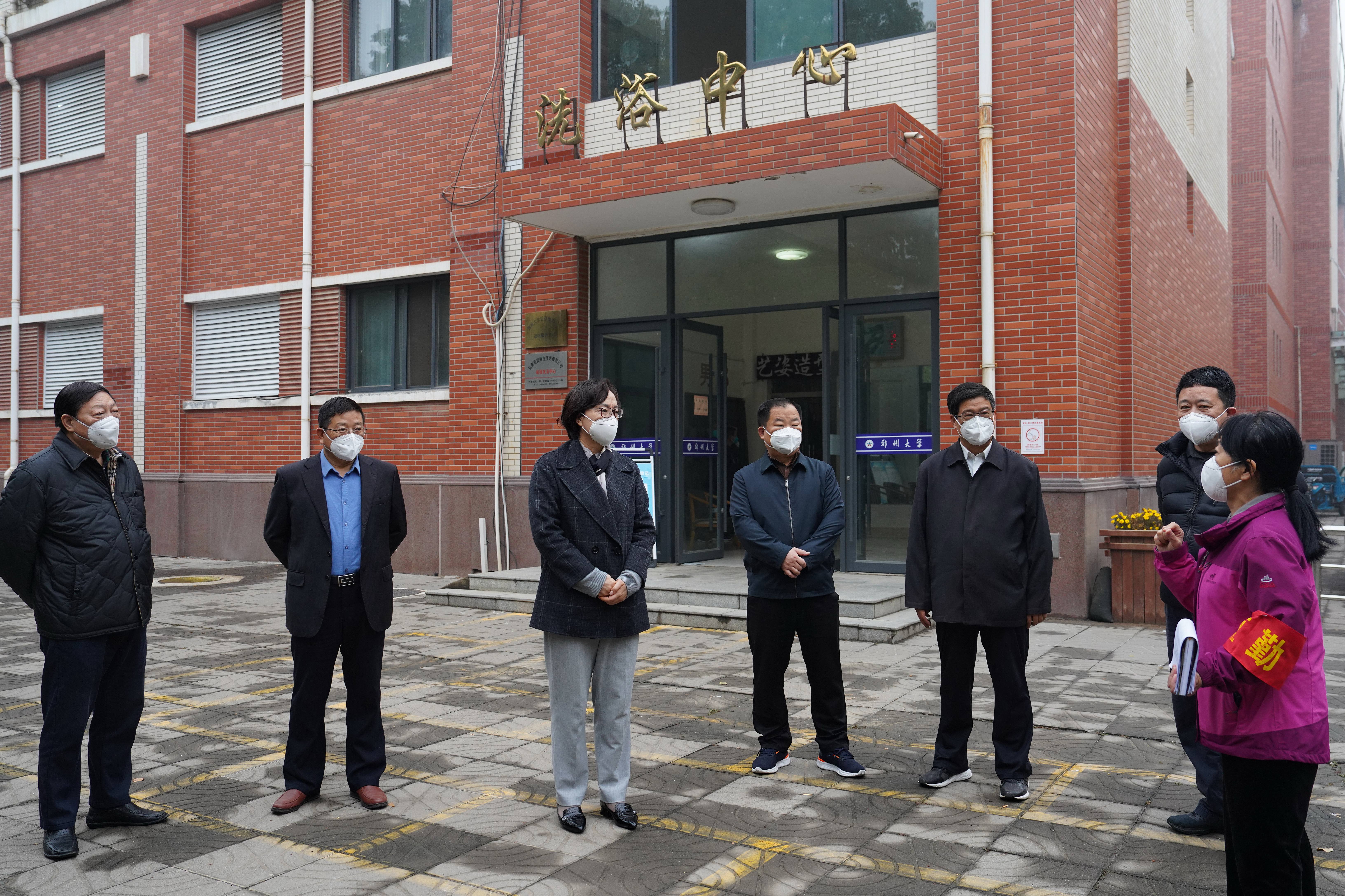 李蓬一行首先到四個社區查看社區運行情況。在柳園社區,李蓬一行查看了柳園8號樓、9號樓學生宿舍以及社區辦公場所,聽取社區負責同志關于社區運行情況的匯報,詳細詢問樓長、樓層長工作與生活情況,并代表學校對社區全體工作人員表示慰問與感謝。她指出,柳園社區是全校入住學生規模最大的社區,社區全體工作人員要頂住壓力、克服困難,在做好社區各項工作的同時,也要強化自我防護,保持身體健康。