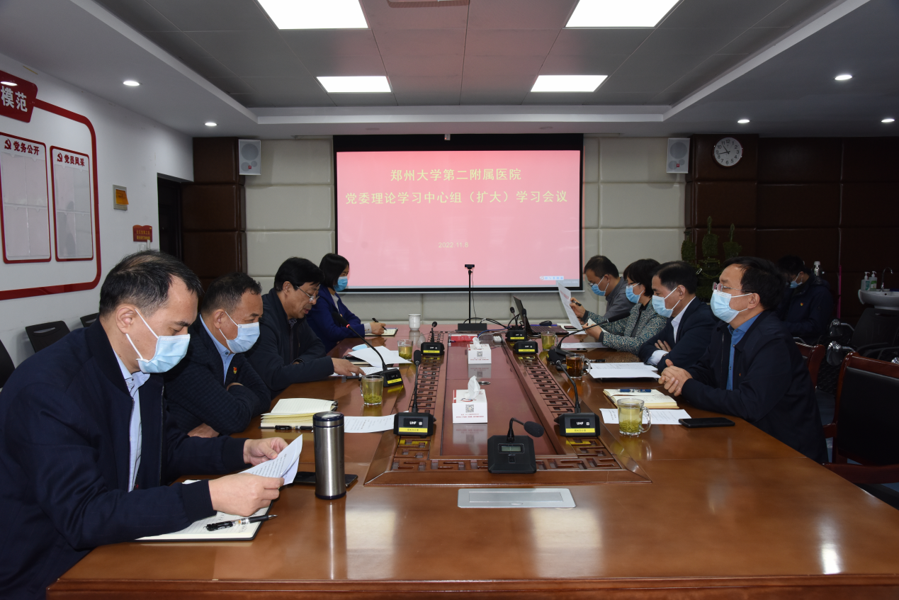 近日,鄭州大學第二附屬醫院黨委組織召開黨委理論學習中心組(擴大)學習會議,深入學習貫徹落實黨的二十大精神,并對全院學習宣傳貫徹落實工作進行安排部署。院領導班子成員、各黨總支、黨支部書記參加會議。