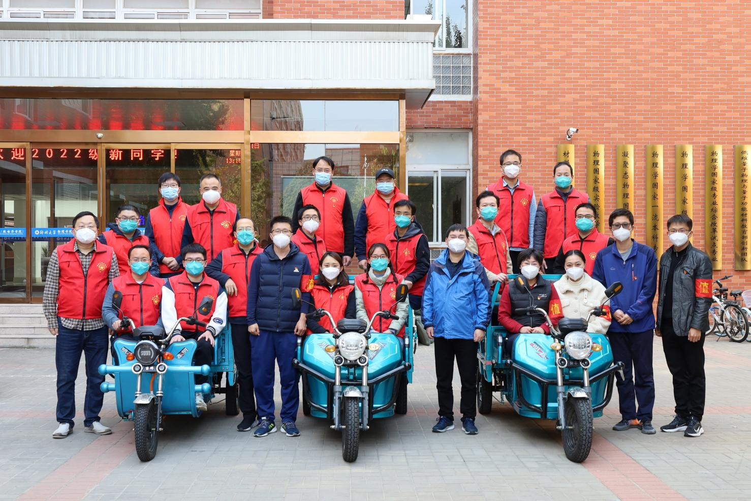 為抗擊疫情,確保師生生命健康安全,自10月10日起,物理學院院長陳剛、黨委副書記王永剛帶領全體輔導員和青年教師志愿者共24人組成抗疫服務隊分批進駐主校區,積極做好學生服務、管理和保障工作,認真落實各項疫情防控和安全穩定要求。