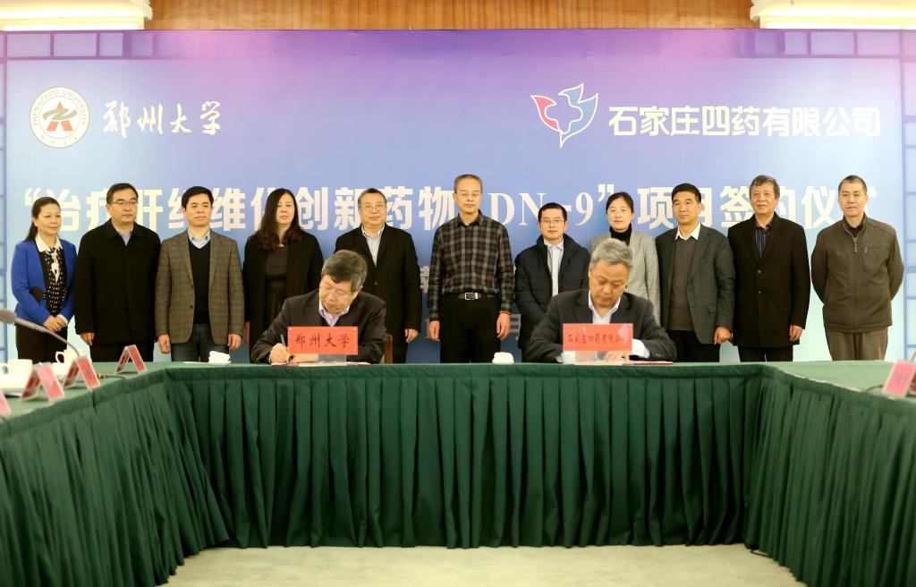 4.2018年3月3日,石家莊四藥有限公司與鄭州大學正式簽約。生命科學學院與戴桂馥教授團隊歷經十余年研發的治療肝纖維化創新藥物ADN-9專利轉讓與研究開發費用達5000萬元,實現了學校科技成果轉化的新突破。