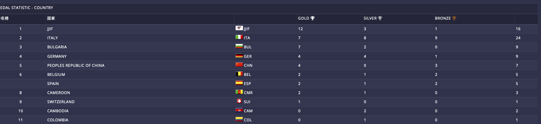 中國(guó)隊(duì)位居獎(jiǎng)牌榜第五位