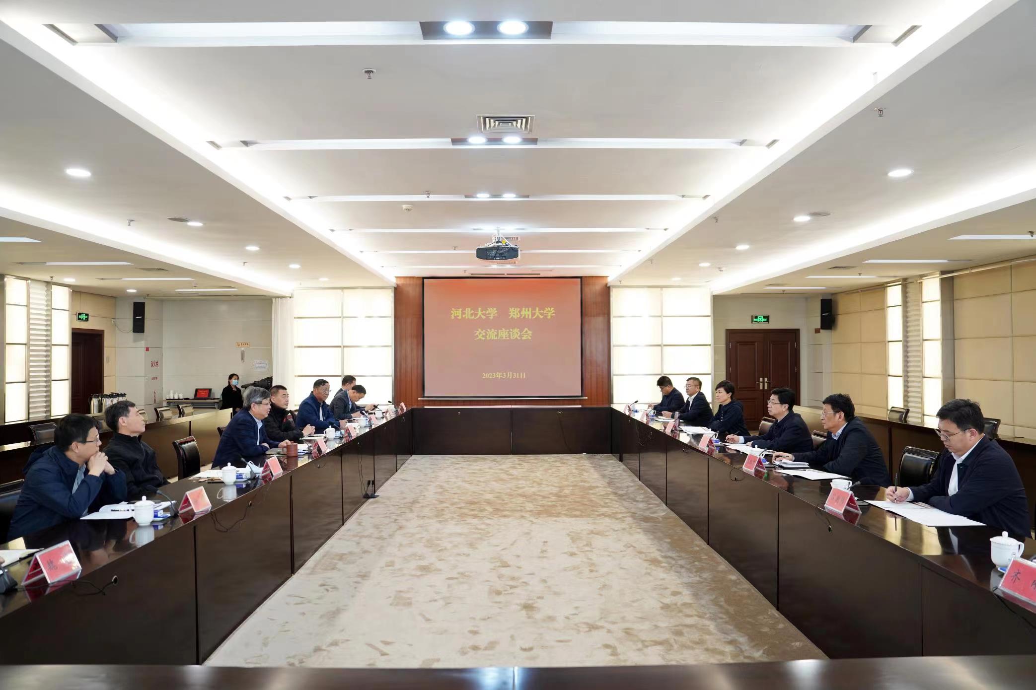 劉炯天對郭健一行表示歡迎,并介紹了學(xué)校發(fā)展歷程、學(xué)科建設(shè)、人才培養(yǎng)、師資隊伍、國家創(chuàng)新高地與世界一流大學(xué)情況。他說,鄭州大學(xué)認(rèn)真落實國家“雙一流”建設(shè)戰(zhàn)略部署,在河南省委省政府堅強領(lǐng)導(dǎo)下,貫徹一流大學(xué)建設(shè)“三步走”戰(zhàn)略,統(tǒng)籌推進國家創(chuàng)新高地與世界一流大學(xué)建設(shè),加快實施“230”工程,前瞻30年,進取30位,持續(xù)提升創(chuàng)新能力,主動服務(wù)區(qū)域經(jīng)濟社會發(fā)展,推動把論文寫在紙上到寫在祖國大地上的轉(zhuǎn)變,堅定不移走好一流大學(xué)建設(shè)“新長征”。他指出,伴隨著國家與河南的現(xiàn)代化建設(shè),中原大地一定能夠建設(shè)一所世界一流大學(xué);鄭州大學(xué)世界一流大學(xué)建設(shè),也一定能夠為國家與河南現(xiàn)代化作出應(yīng)有貢獻!他表示,河北大學(xué)和鄭州大學(xué)同屬部省合建高校,在體制機制、治理模式、辦學(xué)格局等方面存在諸多相通之處,多年來,兩校互學(xué)互鑒,合作交流不斷,結(jié)下了深厚友誼。希望雙方以此次調(diào)研交流為契機,進一步深化合作交流,推動在更高層次、更寬領(lǐng)域開創(chuàng)合作新局面,攜手譜寫高質(zhì)量發(fā)展的新篇章。