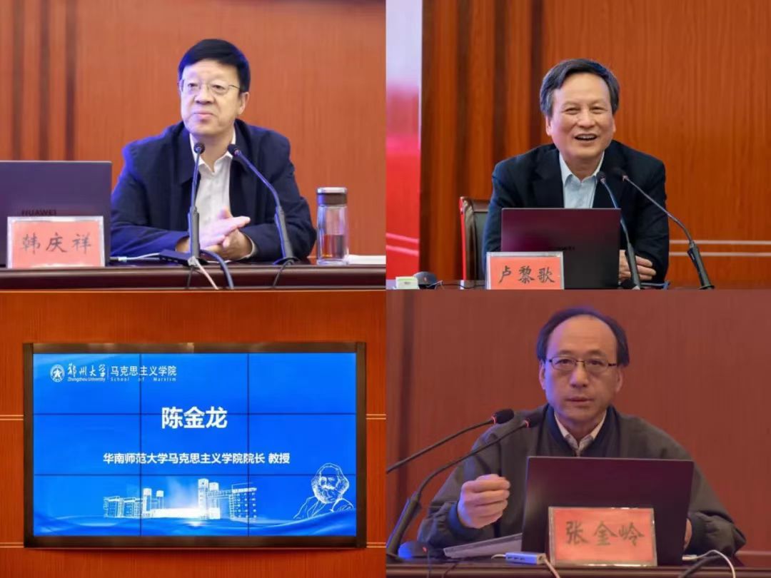 中共中央黨校教授韓慶祥、西安交通大學(xué)教授盧黎歌、華南師范大學(xué)教授陳金龍、《中國(guó)教育報(bào)》理論周刊高級(jí)編輯張金嶺作主旨報(bào)告