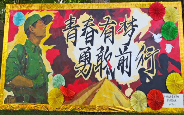 板報比賽中,同學們用一幅幅精美的作品,表達了 “愛國、愛黨、愛軍”的真切情感,展示了軍訓中的青春活力和風采;利用訓練休息時間,開展健康向上的娛樂活動,為大家提供了一個充分展示個人才藝的舞臺,在歡聲笑語中增進了友誼和團結;通過內務和宿舍衛生檢查評比,培養學生的生活自理能力和團結協作精神,養成良好的衛生習慣,把宿舍營造成整潔和舒適的生活空間。