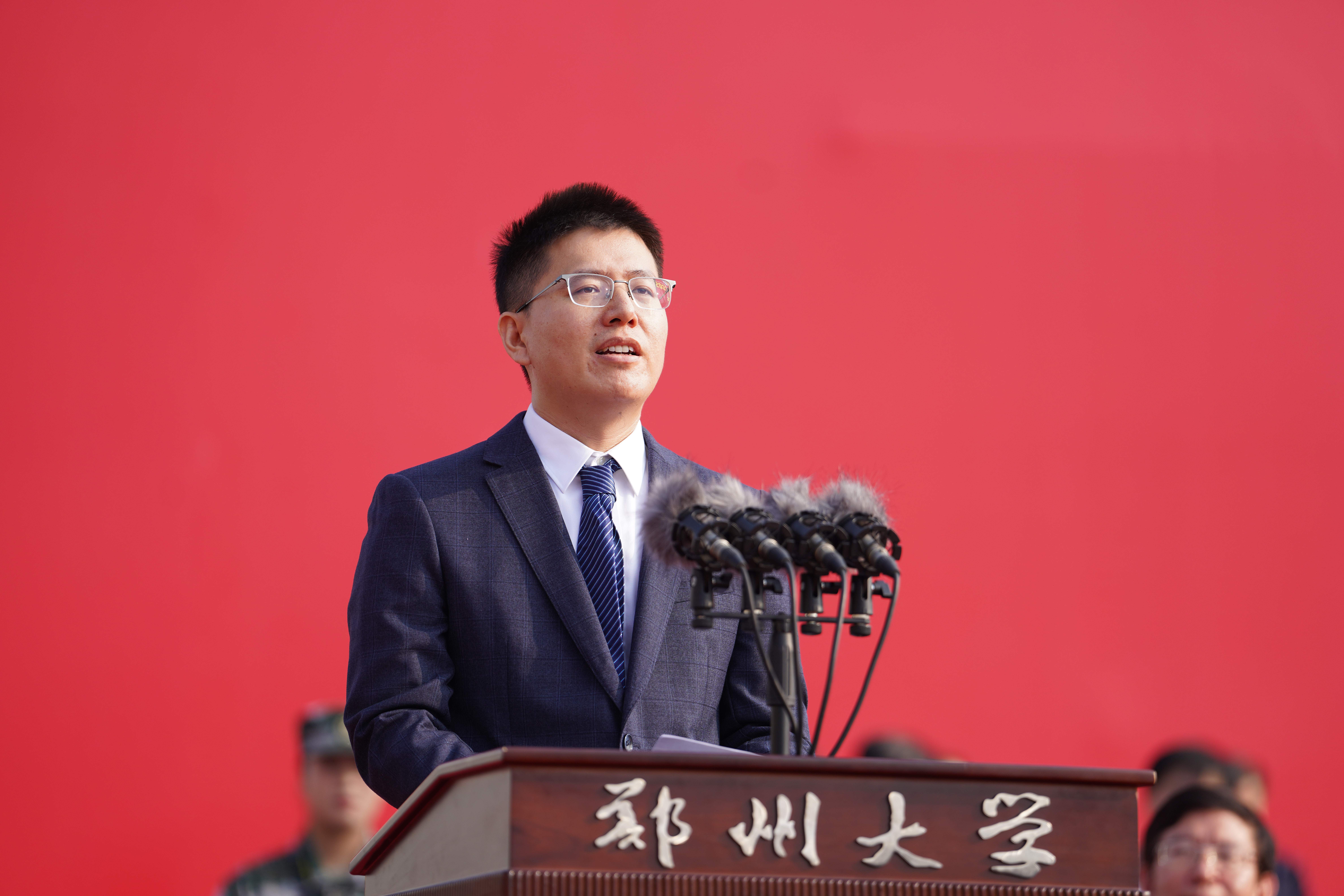 砥礪逐夢迎新季,揚帆再起展新程。9月15日,鄭州大學2023級新生開學典禮在主校區本源體育場舉行。特邀嘉賓、英雄航天員、中國首位進入太空的女航天員劉洋,河南省軍區政治工作局大校副主任宋平,日本工程院院士、網絡空間安全學院物聯網工程學科方向帶頭人李頡,校友代表、清華大學水利水電工程系教授、水沙科學與水利水電工程國家重點實驗室主任李慶斌,解放軍陸軍第83集團軍楊根思部隊副參謀長、鄭州大學軍訓團副團長齊琛,鄭州大學優質生源基地中學校長代表,承訓部隊83集團軍楊根思部隊承訓官兵,校領導別榮海、李蓬、常俊標、吳宏陽、韓國河、張倩紅、許東升、單崇新、胡少偉、徐東升、劉春太,學術副校長董子鋼、趙中偉,學術副校長、第一附屬醫院院長姜勇,校部機關和各院系主要負責同志,教師代表和2023級全體新生共同參加了活動。校黨委副書記吳宏陽主持典禮。