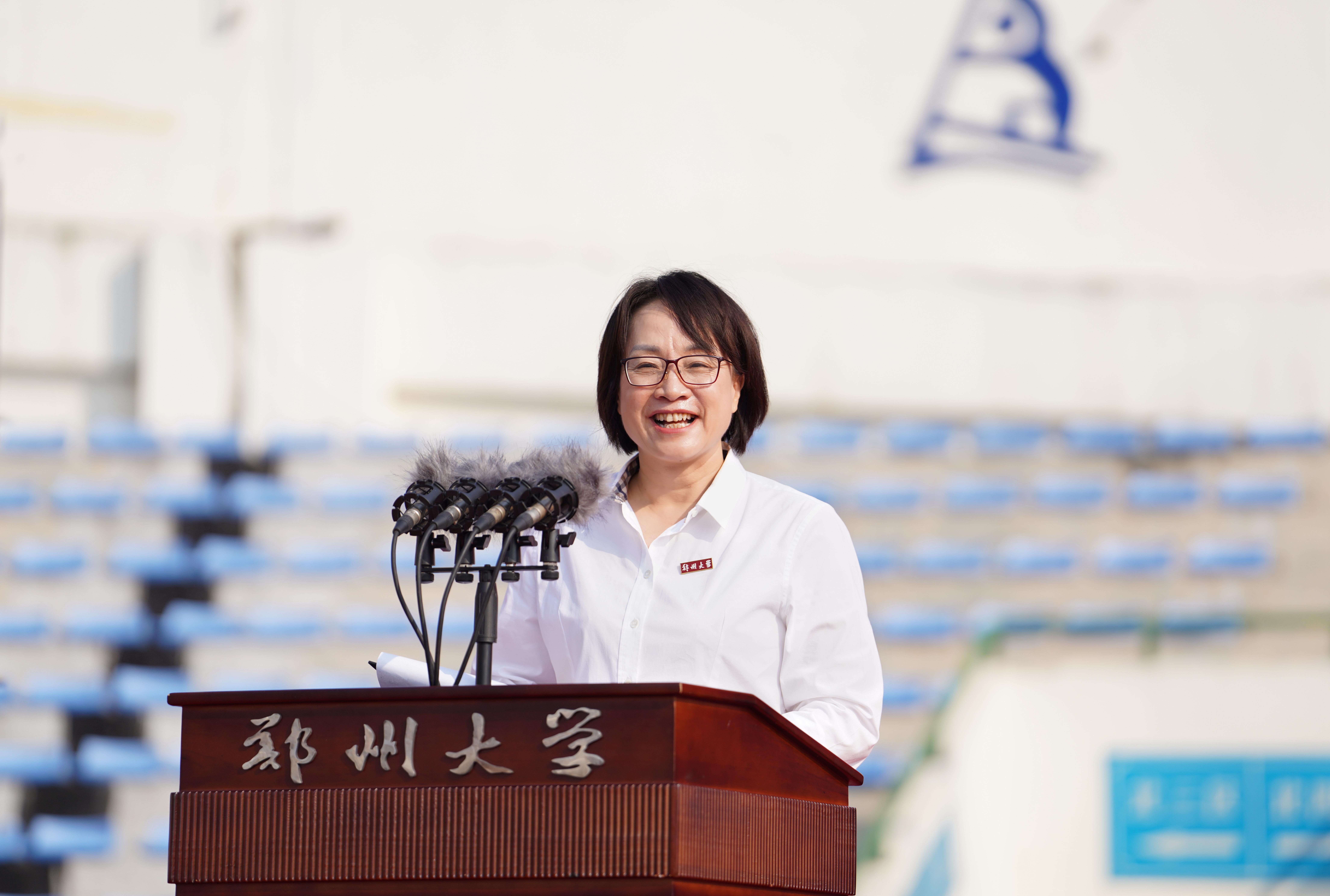 中國科學院院士、校長李蓬作題為《發現自我、勇毅前行》的講話。她代表學校向2023級10564名本科生、8741名研究生、688名博士生以及來自58個國家的543名留學生表示歡迎,并用“大”和“美”介紹了學校的基本情況,用“歷史悠久、站位前沿、名師輩出”介紹了學校的歷史與取得成就,她希望同學們用心體會鄭大獨有的厚重與靈秀,她寄語同學們在鄭州大學開啟人生新的階段,上好“大學第一課”,在大學里發現自我、塑造自我、成就自我、超越自我,完成從一名大學新人到棟梁之材的蛻變,鼓勵同學們認清自己的人生坐標,樹立前行的奮斗目標;發現自己的使命,堅定前行的信念;發現自己無盡的潛力,積蓄前行的能力。她指出,國家的前途,民族的命運,人民的幸福,是當代中國青年必須和必將承擔的重任,她希望同學們懷揣星辰大海,發現自我、勇毅前行,以昂揚的姿態去迎接未來,在實現中國夢的偉大征程中展現鄭大人的時代風采!