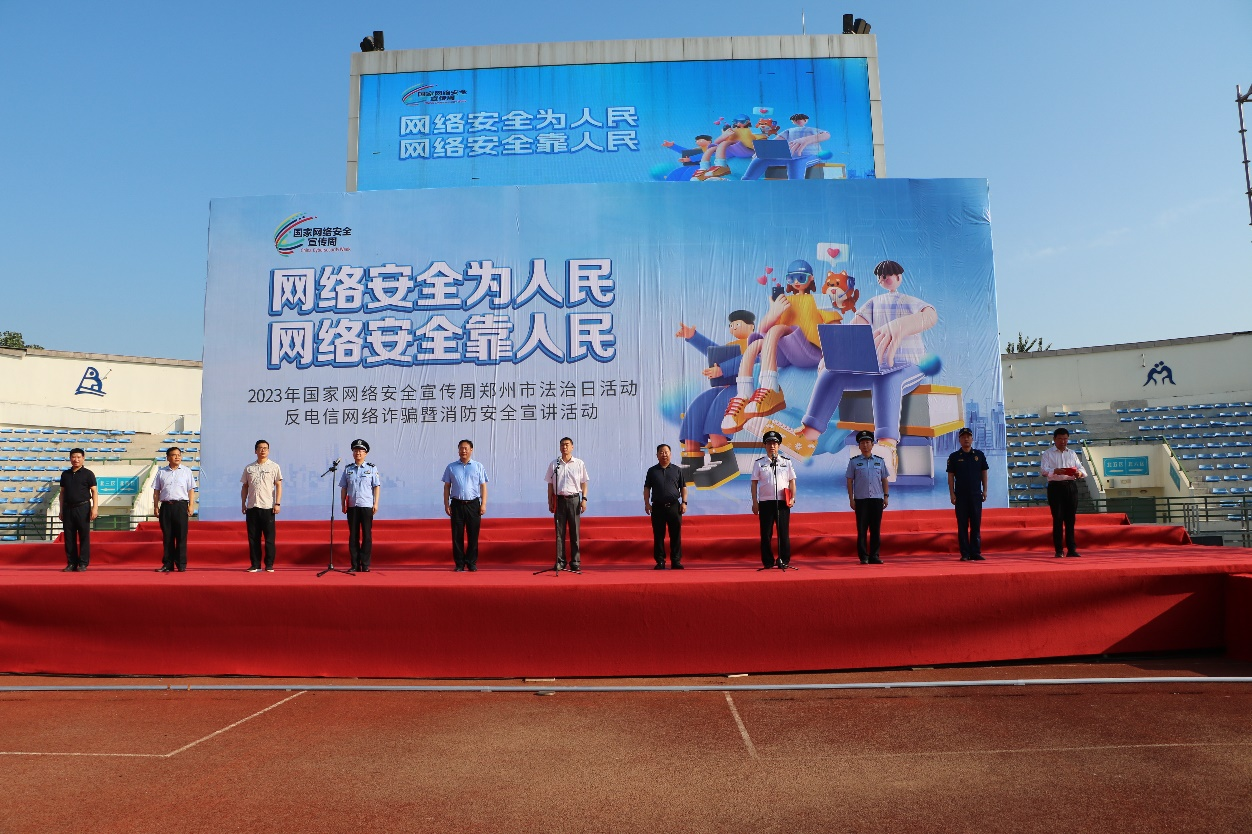 9月14日,由黨委保衛部、保衛處和信息化辦公室、網絡管理中心共同承辦的“2023年鄭州市網絡安全周反電詐暨消防安全宣講活動啟動儀式”在鄭州大學本源體育場舉行。