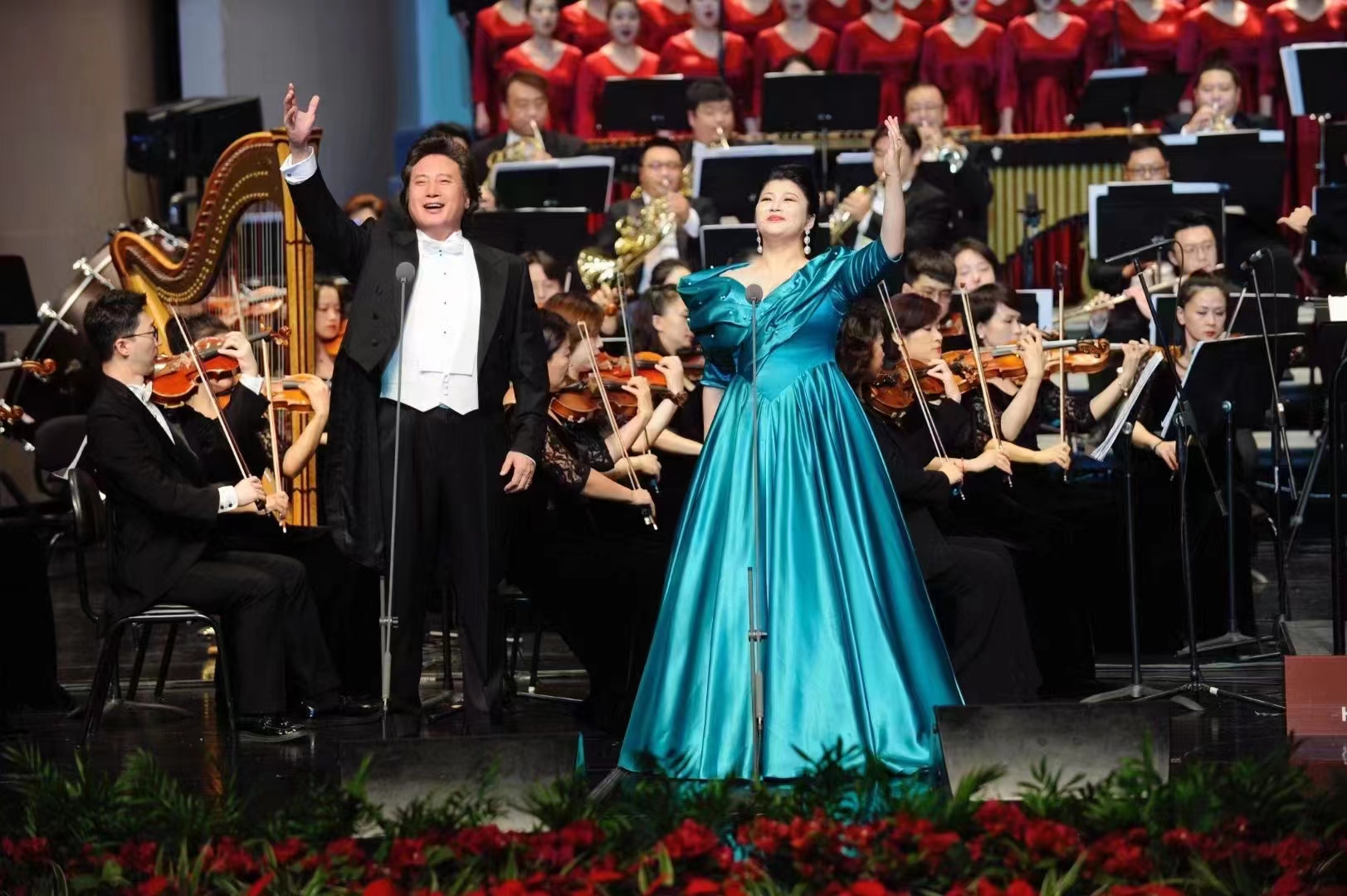 著名指揮家劉沙,著名男高音歌唱家、鄭州大學河南音樂學院院長戴玉強,著名女高音歌唱家王一鳳,青年演奏家薛淼,青年歌唱家李貝貝、王園園、霍錕、羅覲堂等,攜手河南交響樂團、河南省歌劇團、鄭州大學河南音樂學院合唱團,共同為觀眾獻上了一場唯美的視聽盛宴。在美妙動人的音符中,人們回望祖國崢嶸歲月,歌頌祖國壯麗山河,禮贊祖國輝煌成就,祝福祖國光輝未來。