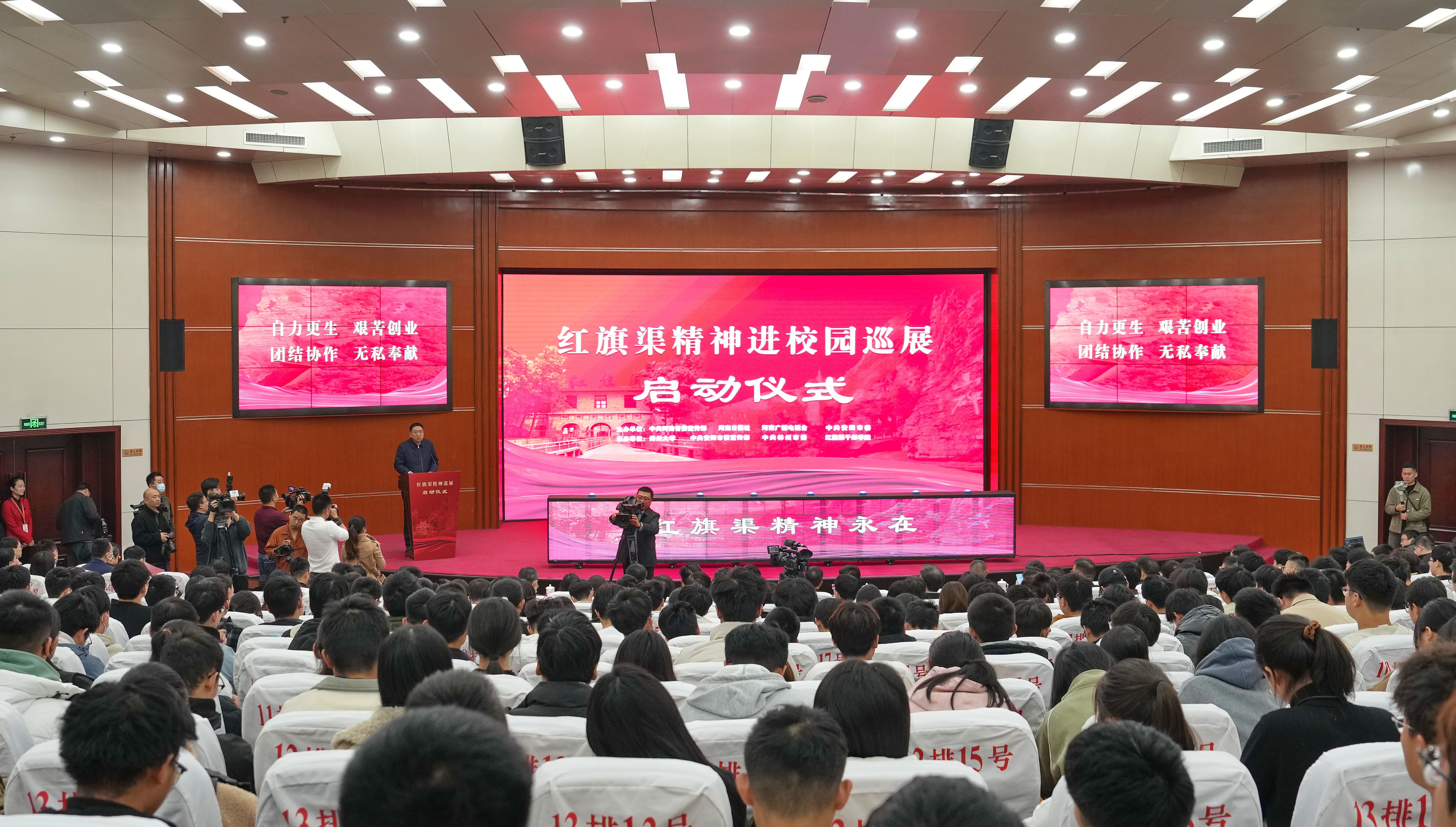 11月21日,“紅旗渠精神進校園巡展”活動在鄭州大學正式啟動。省委宣傳部常務副部長黃玉國、安陽市委書記袁家健、河南日報社副總編輯張學文、河南廣播電視臺副總編輯郭士飛,鄭州大學黨委書記別榮海、黨委副書記吳宏陽出席,鄭州大學黨委常委、宣傳部部長厲勵,林州市委書記孫建鐸,紅旗渠干部學院黨委副書記、常務副院長劉芳,鄭州大學黨委理論學習中心組全體成員及師生代表等500余人參加啟動儀式。安陽市委常委、宣傳部部長薛崇林主持啟動儀式。